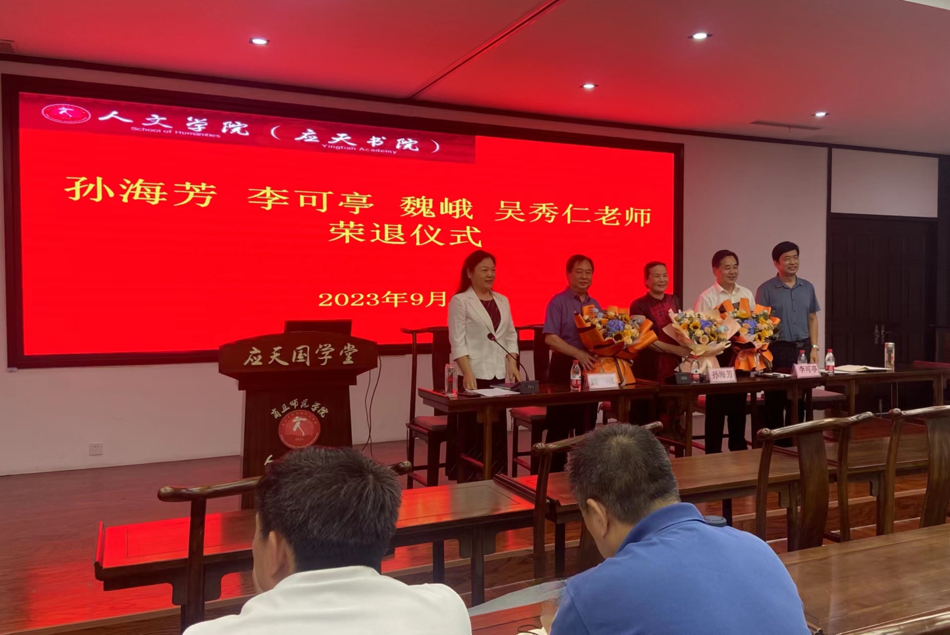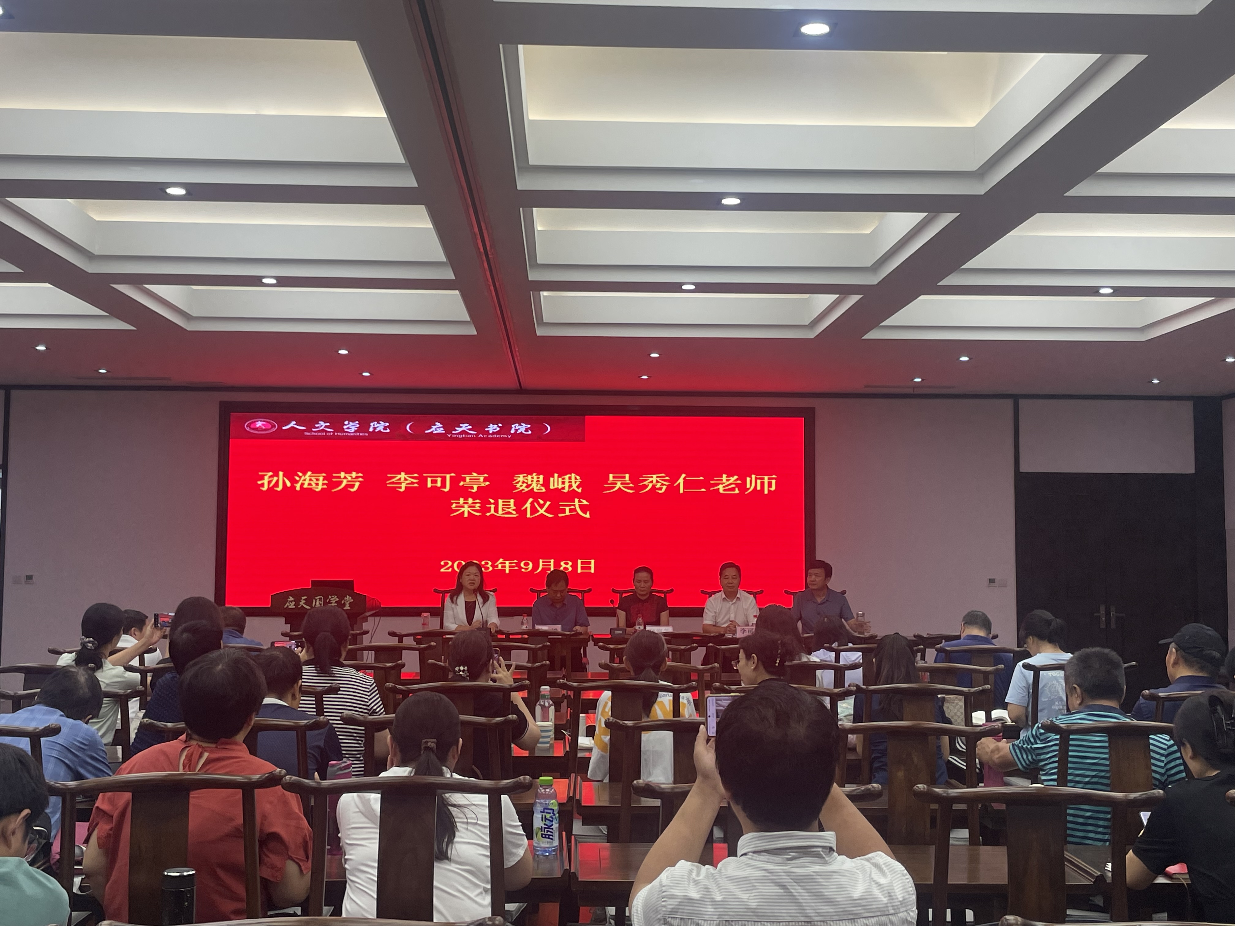 为迎接第39个教师节的到来,9月8日,今年会官网全体教职工在国学堂召开会议,为孙海芳、李可亭、魏峨、吴秀仁四位老师举行荣退仪式,进一步加强对退休教师的关心、关怀,增强全体教职工的荣誉感和归属感,激励青年教师不忘初心、庚续奋斗。会议由学院党委书记陈晓明主持。