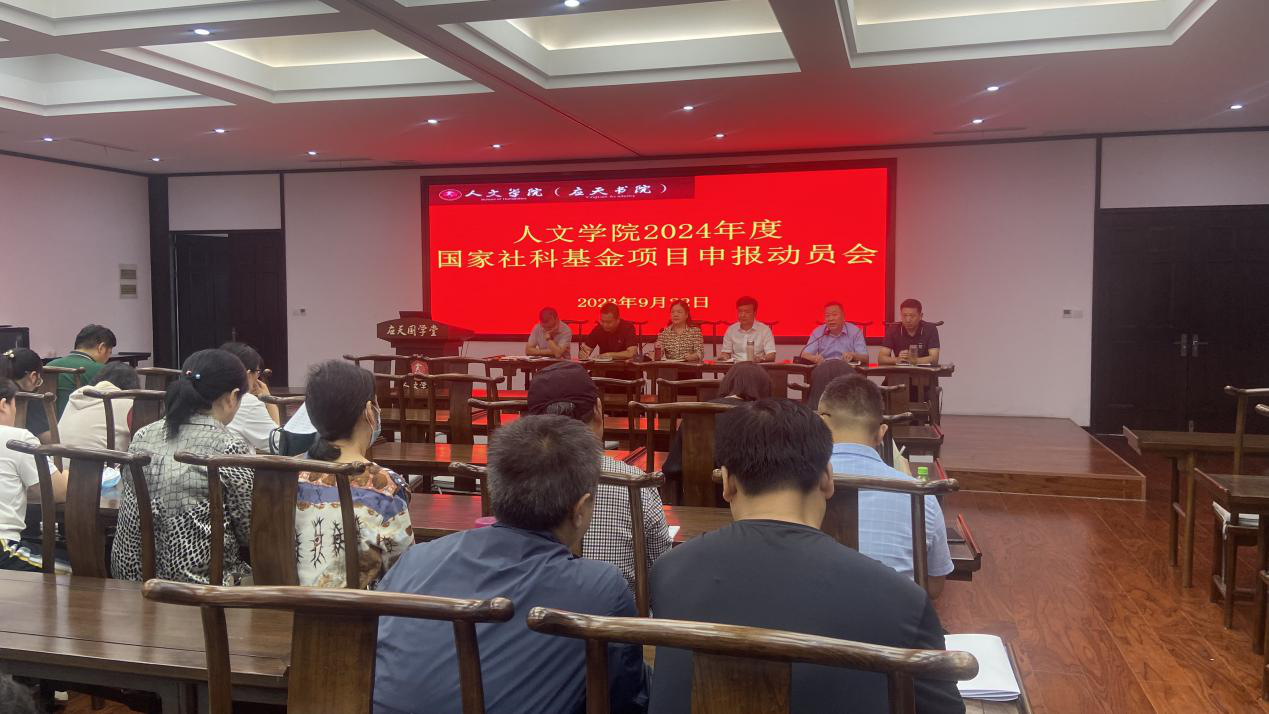 2023年9月22日下午,今年会官网在汉梁楼国学堂召开2024年度国家社科基金项目申报动员会。动员会由学院党委书记陈晓明主持,院长高建立进行动员,副院长冯志伟作具体部署。学院党委副书记卢忠雷、副院长李卫军、朱锦程,学院各系主任、骨干教师和具有博士学位的教师等参会。