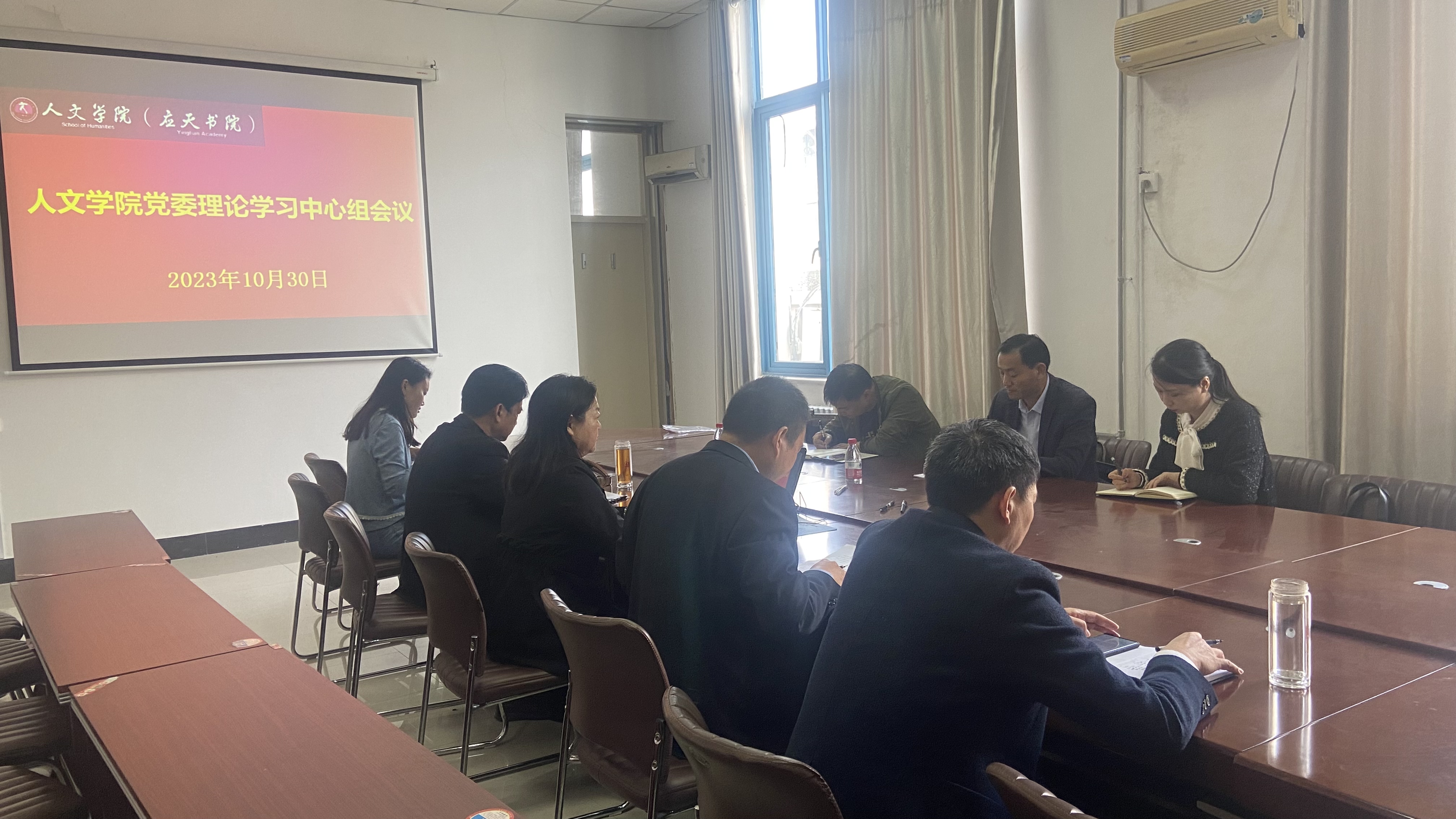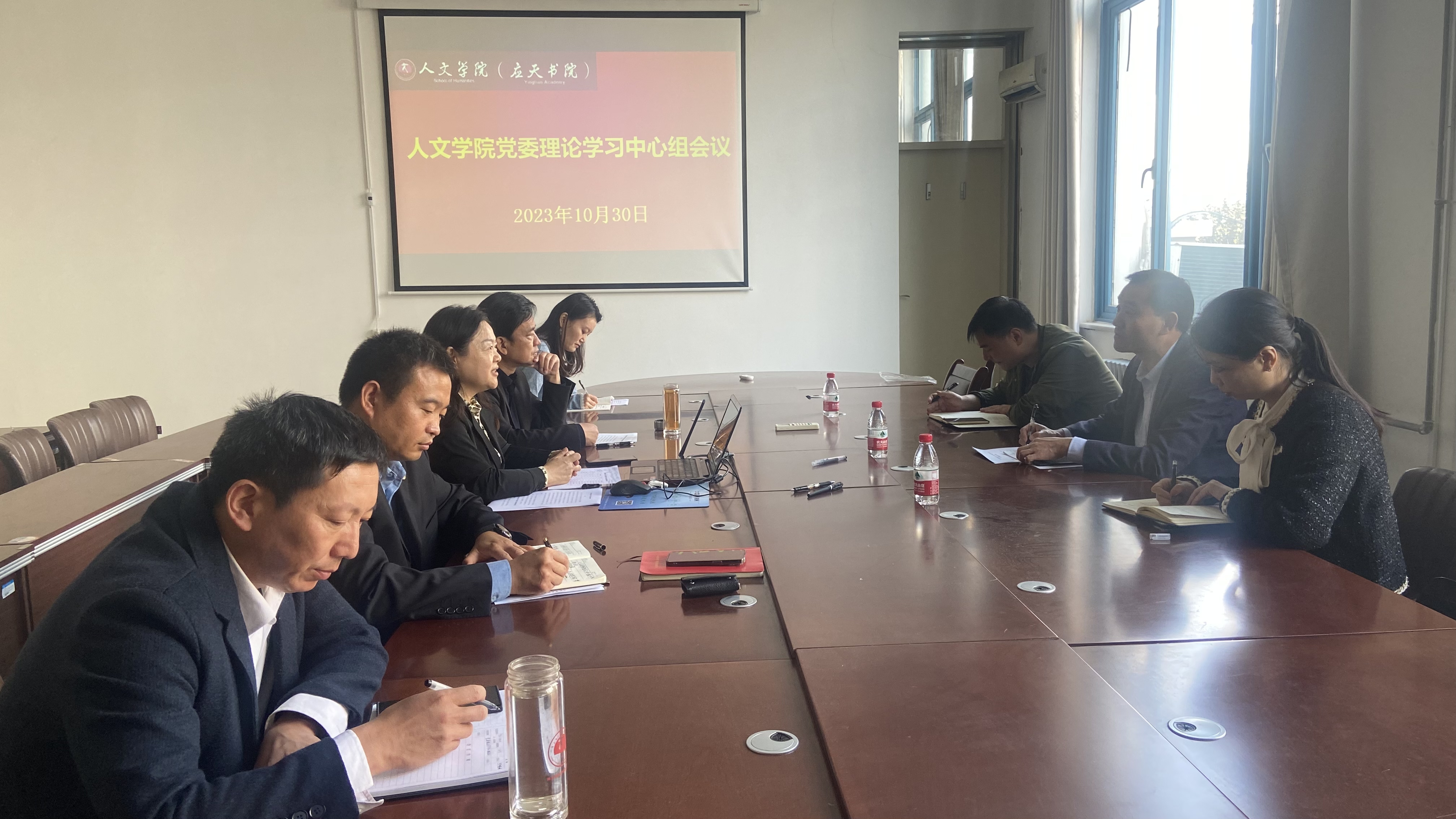 10月30日上午,今年会官网在汉梁楼208会议室召开党委理论学习中心组会议。校党委巡学旁听第三组成员数学与统计学院党委书记孟学超、校党委组织部副部长曹松梅、校党委统战部民族宗教科科长张玉盺,今年会官网党政班子成员、团委书记参加会议。会议由学院党委书记陈晓明主持。