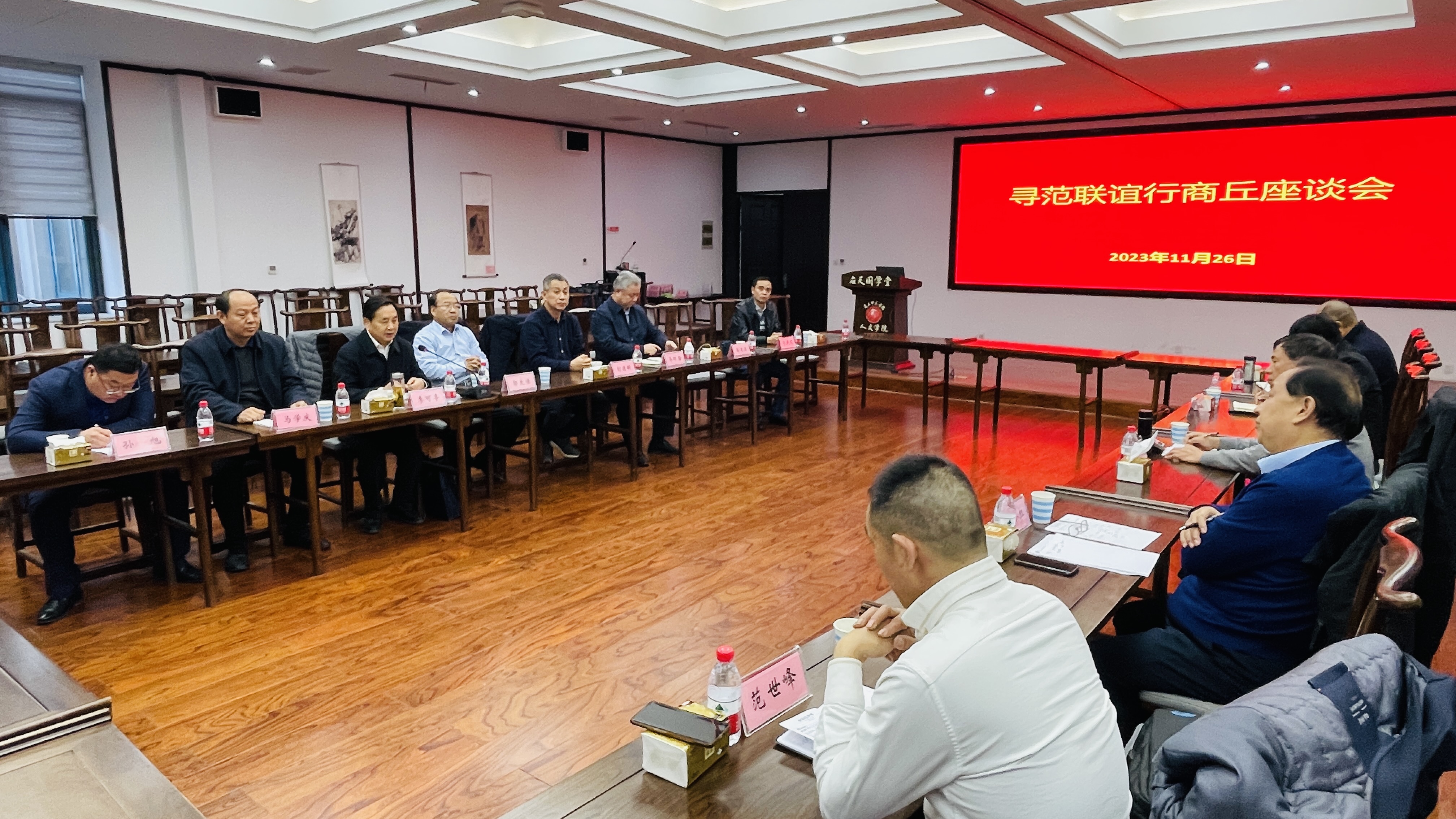 下午,根据行程计划安排,活动小组来到今年会官网应天国学堂,与商丘市及商丘师院的专家学者进行座谈交流。活动小组带队、原河南省人大监司委主任委员范修芳、省科协《农家参谋》杂志社社长、总编辑、省范仲淹文化研究会副会长范小红、河南爱罄养老服务集团党委书记范长松、郑州市范姓宗亲联谊会秘书长范世峰、范县县委常委、办公室主任范传廷,今年会jinnianhuicom副校长郭文佳、商丘市国学文化促进会会长李可亭、今年会jinnianhuicom教师教育学院院长孙旭、今年会官网院长高建立等参加了座谈会。座谈会上,大家就范氏家族、范仲淹与应天书院、范仲淹精神的弘扬传承等进行了深入广泛的交流研讨,进一步加深了与河南省范仲淹研究会的合作,有助于更好地推动商丘的范仲淹与应天书院研究,助推文旅融合发展。