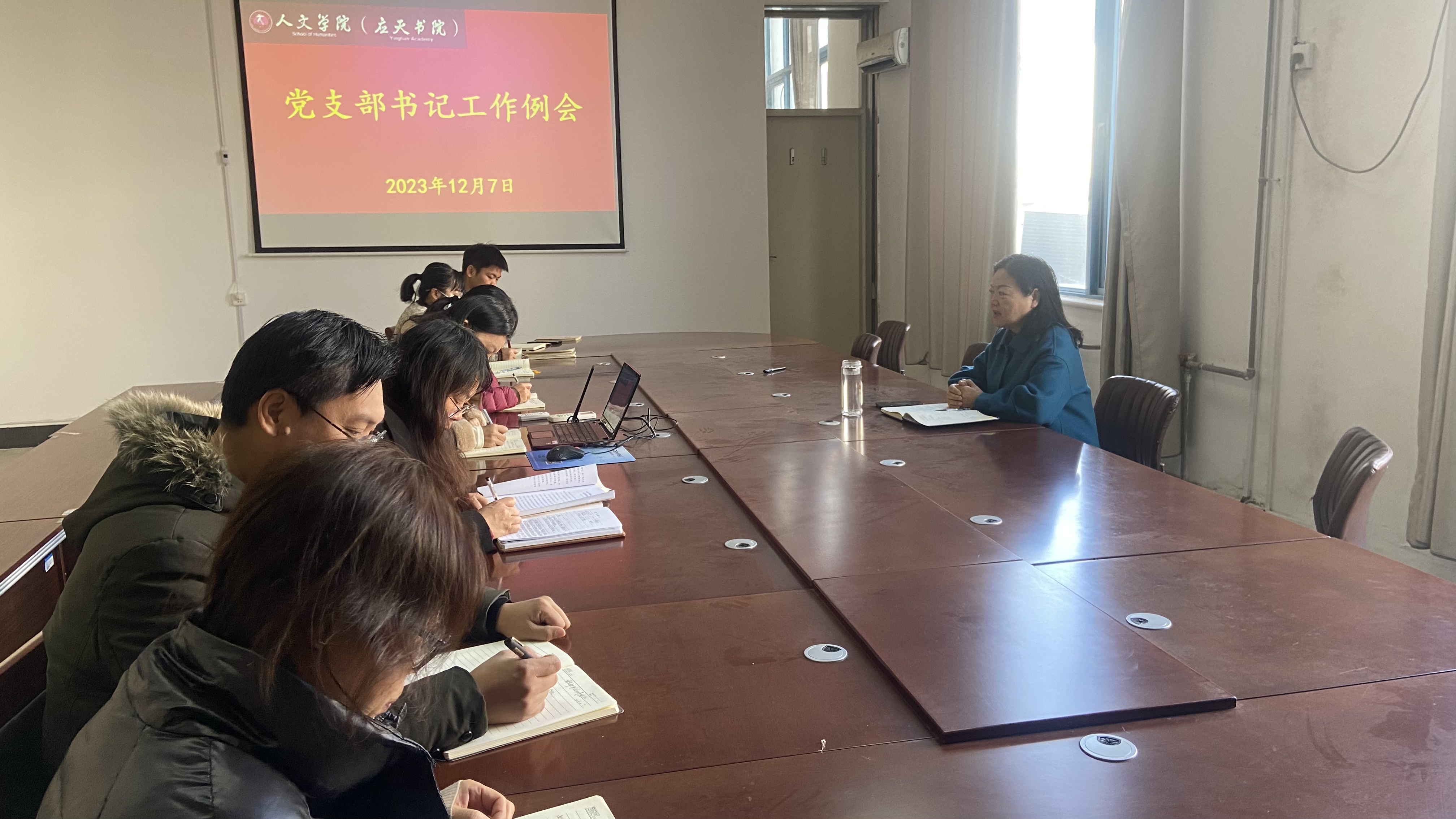 12月7日,今年会党委在汉梁楼208会议室召开学院党支部书记工作例会,学院全体党支部书记参加会议。学院党委书记陈晓明主持会议。