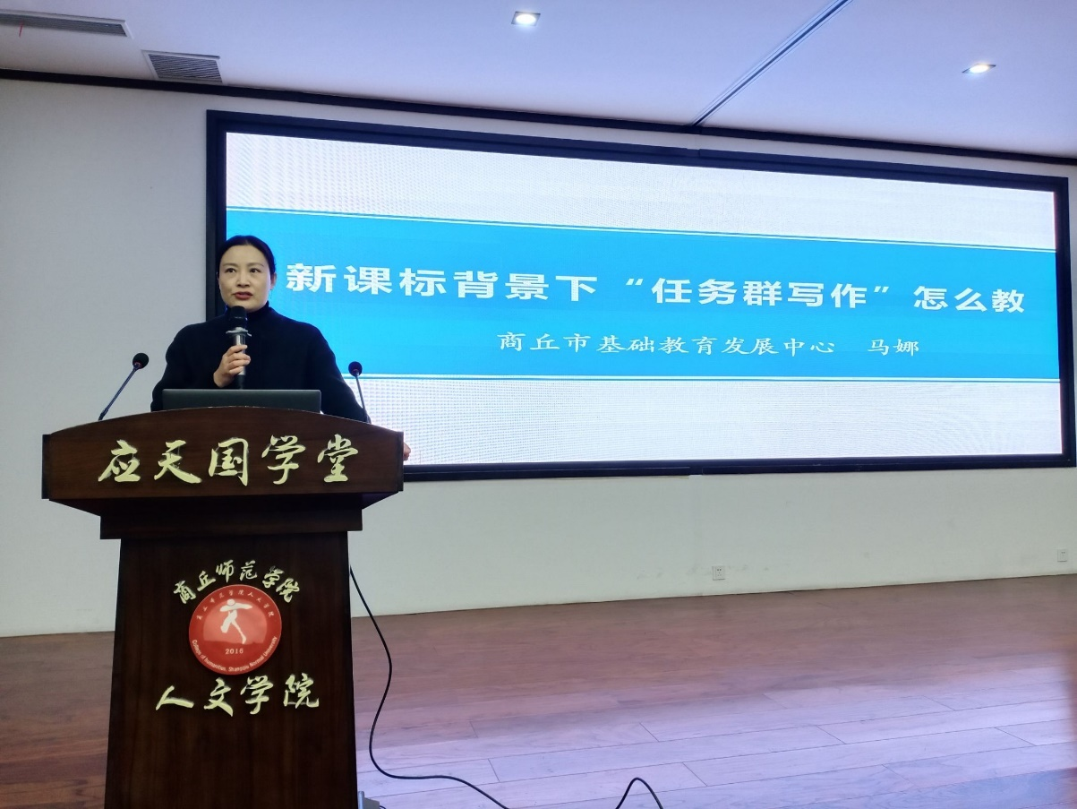 2023年12月10日下午,马娜教授在今年会梁园校区应天国学堂进行了《新课标背景下“任务群写作”怎么教》专题讲座,小学语文班全体学员聆听了讲座。