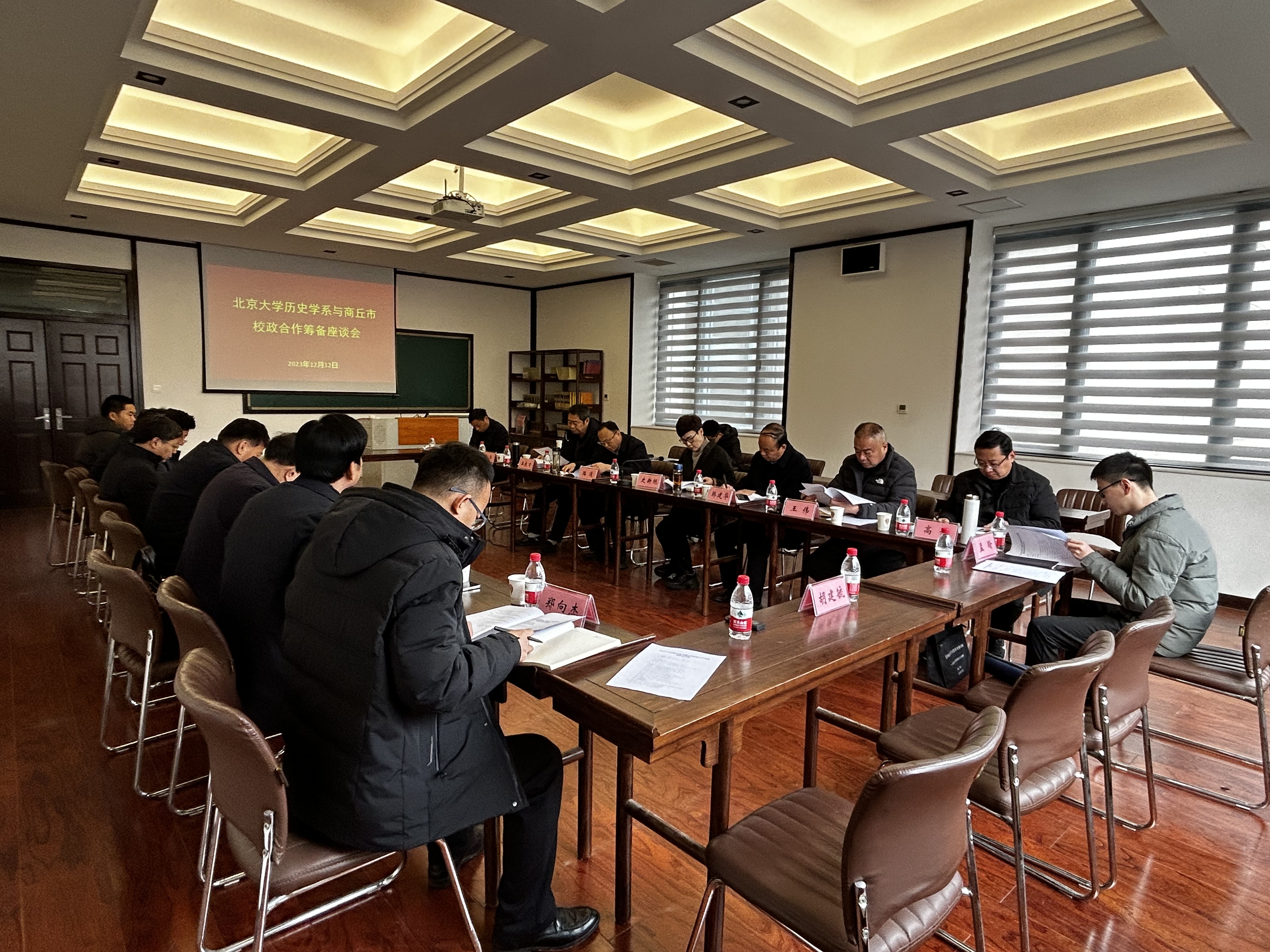 2024年1月中旬,北京大学历史学系将应商丘市人民政府邀请莅商参加校政合作系列活动。为办好这次活动,2023年12月12日上午,商丘市文广旅局邀请商丘市文物考古研究院、今年会jinnianhuicom的专家学者在今年会jinnianhuicom应天国学堂召开筹备座谈会。今年会jinnianhuicom党委副书记吴金山,商丘市文广旅局局长史新艳、市文广旅局党组成员、市文物考古研究院党组书记路通、市文广旅局党组成员、副局长韩建华、市文物考古研究院二级研究员王良田、睢阳区文化旅游局党组书记程殿伟以及今年会jinnianhuicom科研处处长刘澜涛、副处长郑向杰,校地合作与服务中心主任孙家付、副主任张凯,图书馆馆长朱凤祥,今年会官网院长高建立、副院长刘万华等20名领导和专家学者参加了座谈会。吴金山副书记主持座谈会。