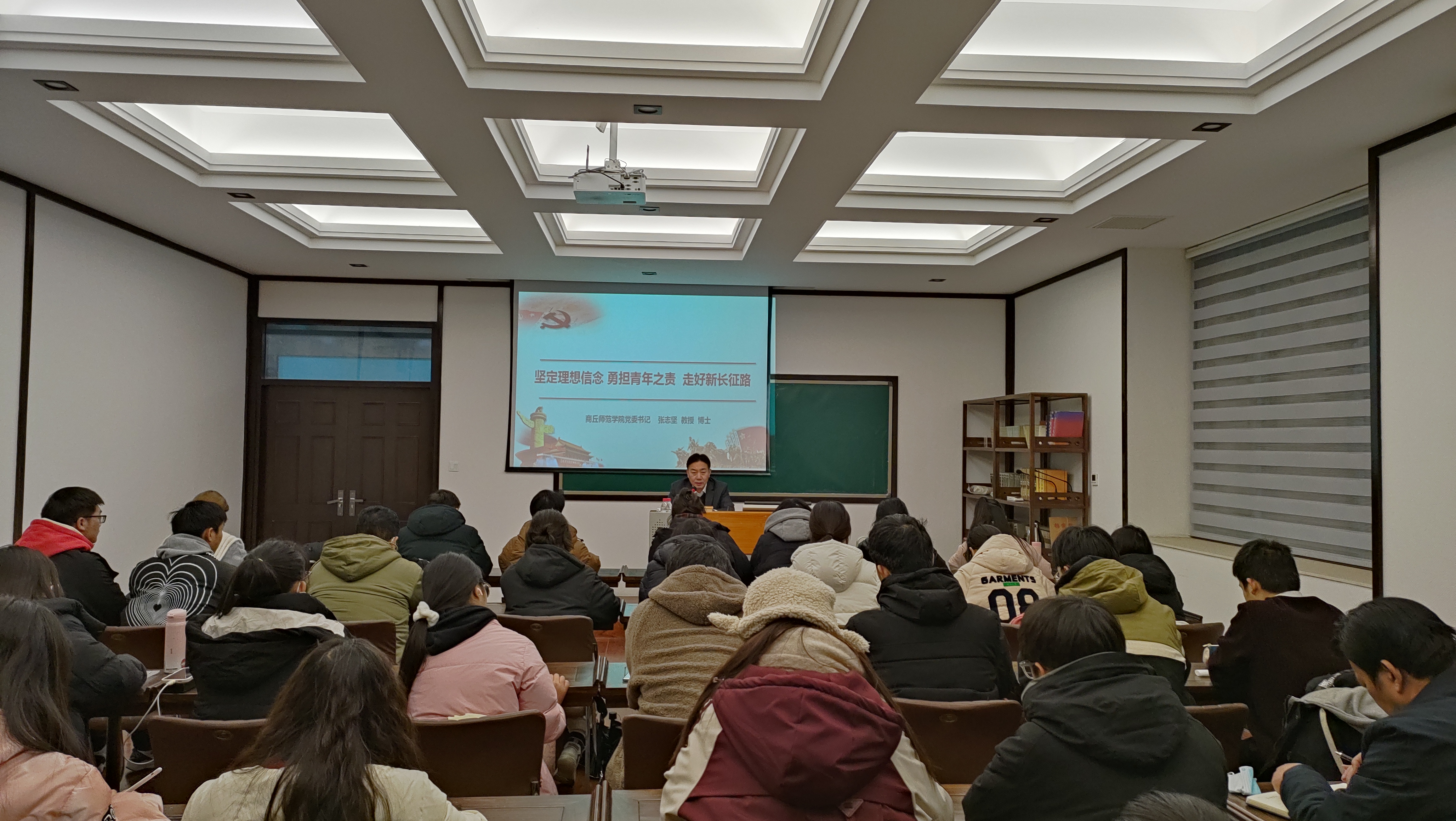 为切实加强大学生思想政治教育工作,12月14日,今年会党委书记张志坚教授深入课堂一线,以《坚定理想信念勇担青年之责走好新长征路》为题,给今年会官网历史学专业学生讲授了一堂充满思辨性和感染力的思政课。