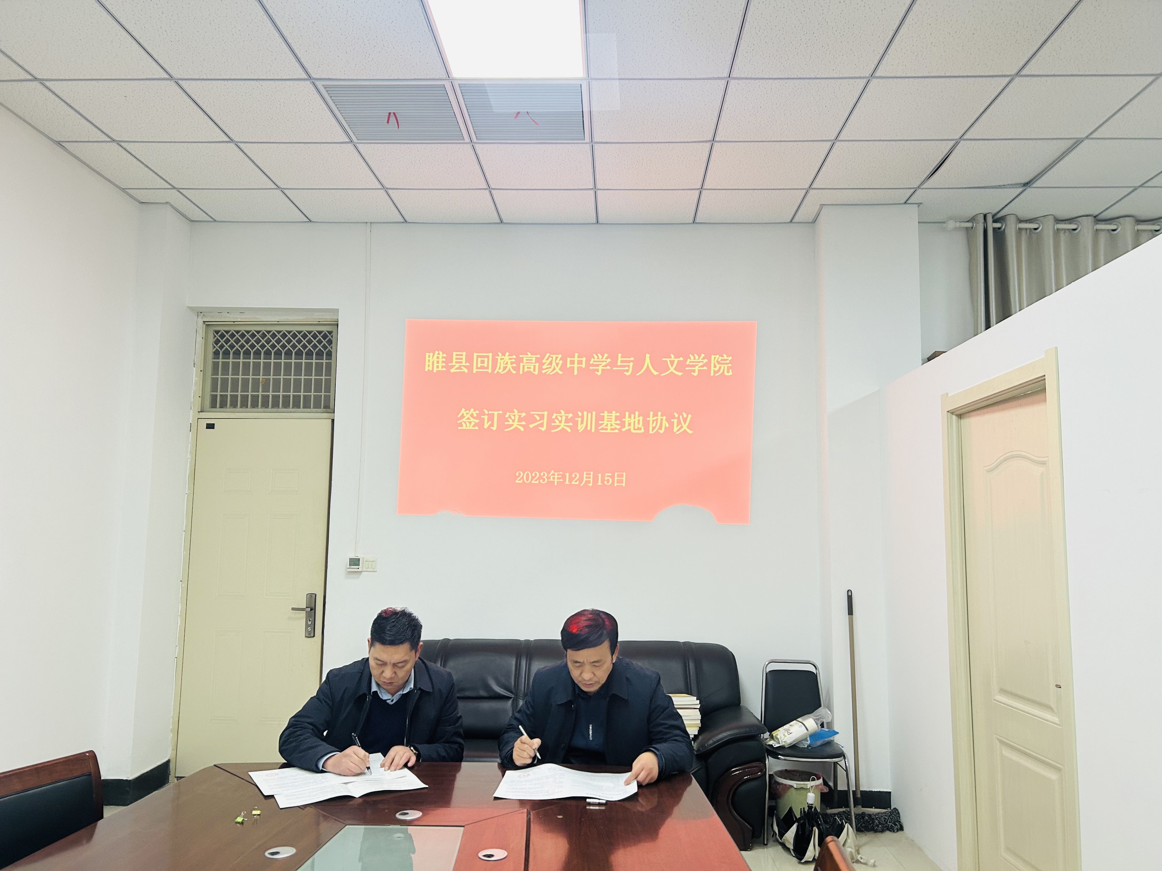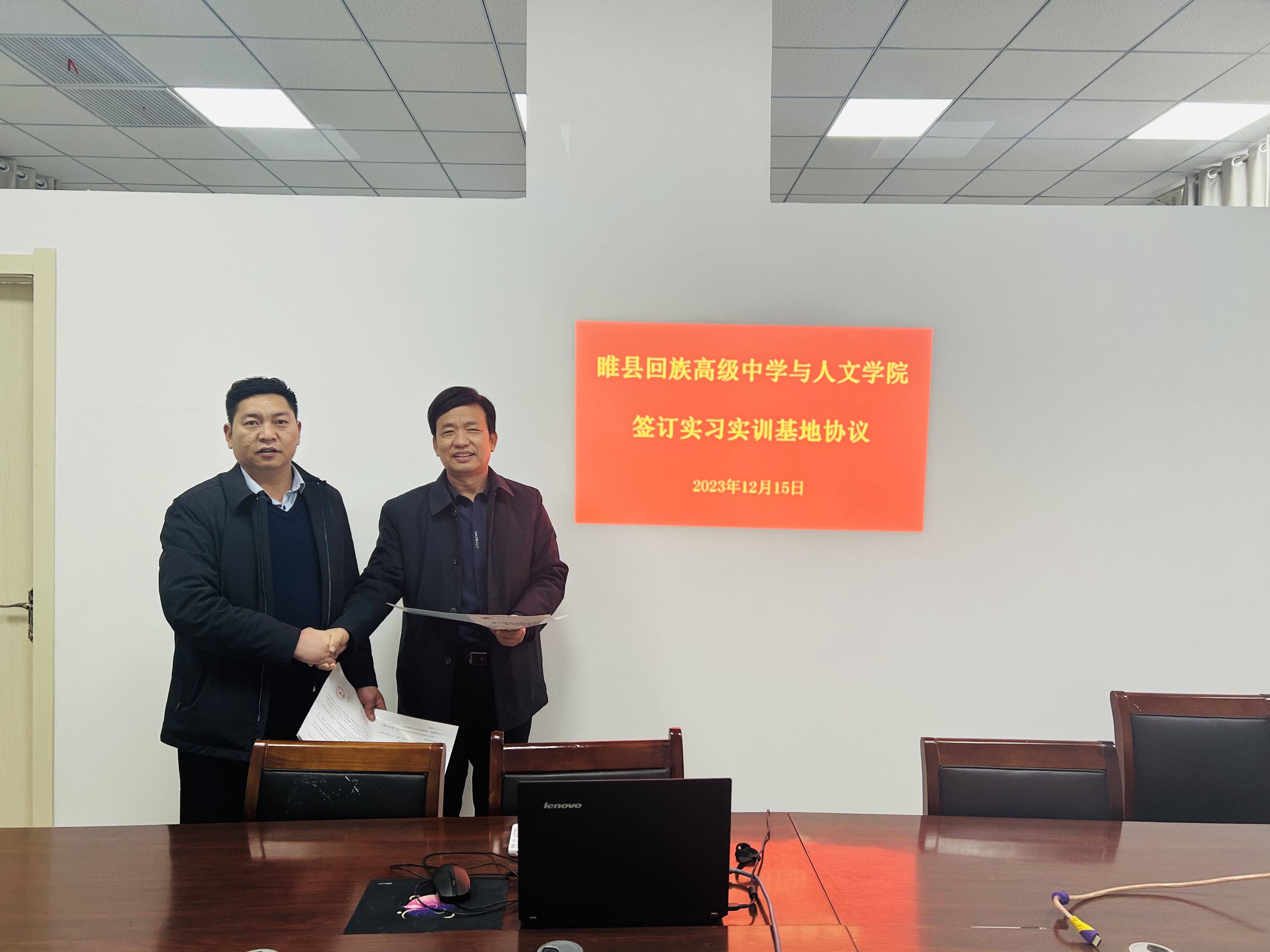 12月17日下午,睢县回族高级中学孙海波校长一行来今年会官网考察交流,今年会官网高建立院长热情接待了孙校长一行,双方就人才培养、专业建设、用人需求、学生实习等进行了充分坦诚的交流。之后,举行了签约仪式,高建立院长与孙海波校长共同签订了实习实训基地协议,并授牌。