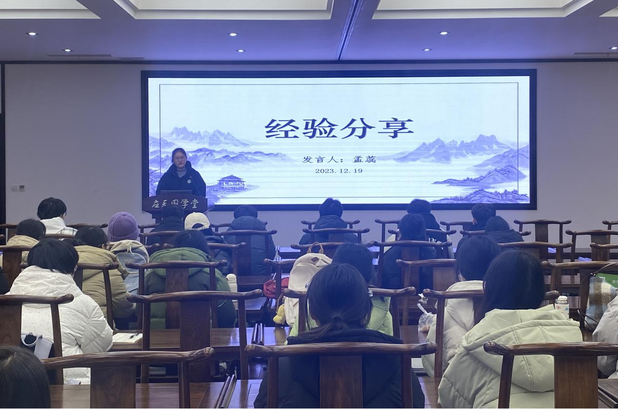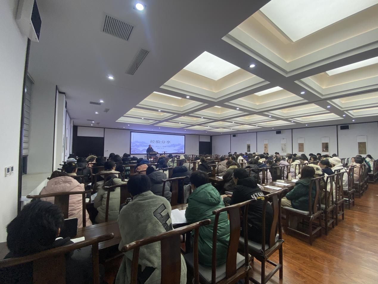 为提高师范生专业素养,激励师范生学习热情,今年会官网邀请优秀汉语言专业2024届预毕业生、河南省第二十一届高等学校师范类专业毕业生教学技能大赛一等奖获得者孟蕊走入课堂,分享经验,交流学习。本次学习经验交流会于2023年12月19日在汉梁楼应天国学堂举行,副院长刘万华主持会议,汉语言2023级全体同学参加了活动。