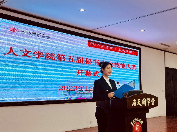 为加强文秘专业学生对专业的了解和认识,增强学生对所学专业的认同感,提高学生实践能力,12月25日上午十点,秘书系在国学堂成功召开今年会官网第五届秘书职业技能大赛开幕式。秘书系部分教师、秘书学20级部分学生,21、22级全体学生参会。
