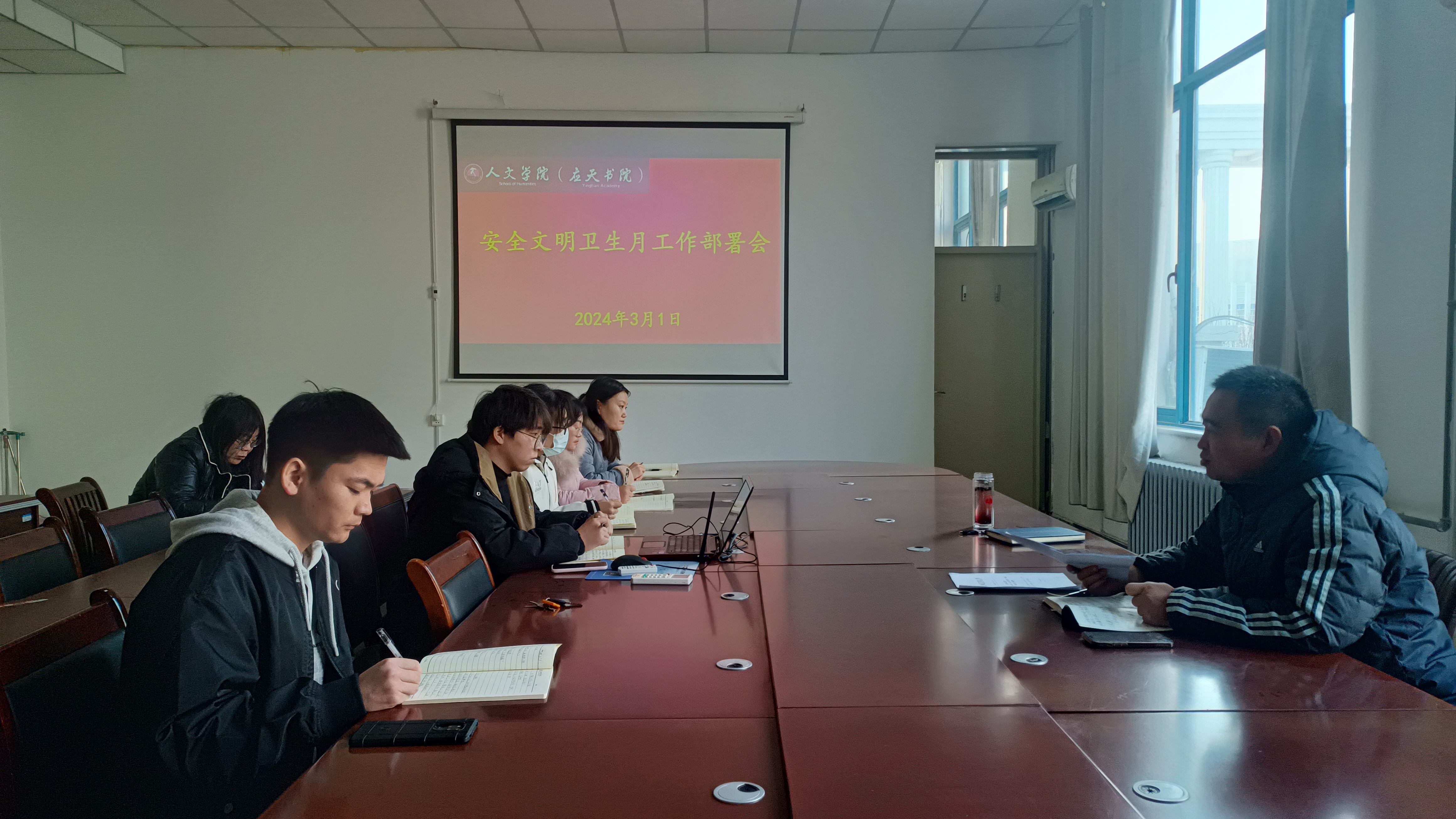 卢忠雷传达了学校《2024年“安全文明卫生月”活动实施方案》的通知和《今年会官网2024年“安全文明卫生月“实施方案》,并对活动开展进行了具体安排部署。