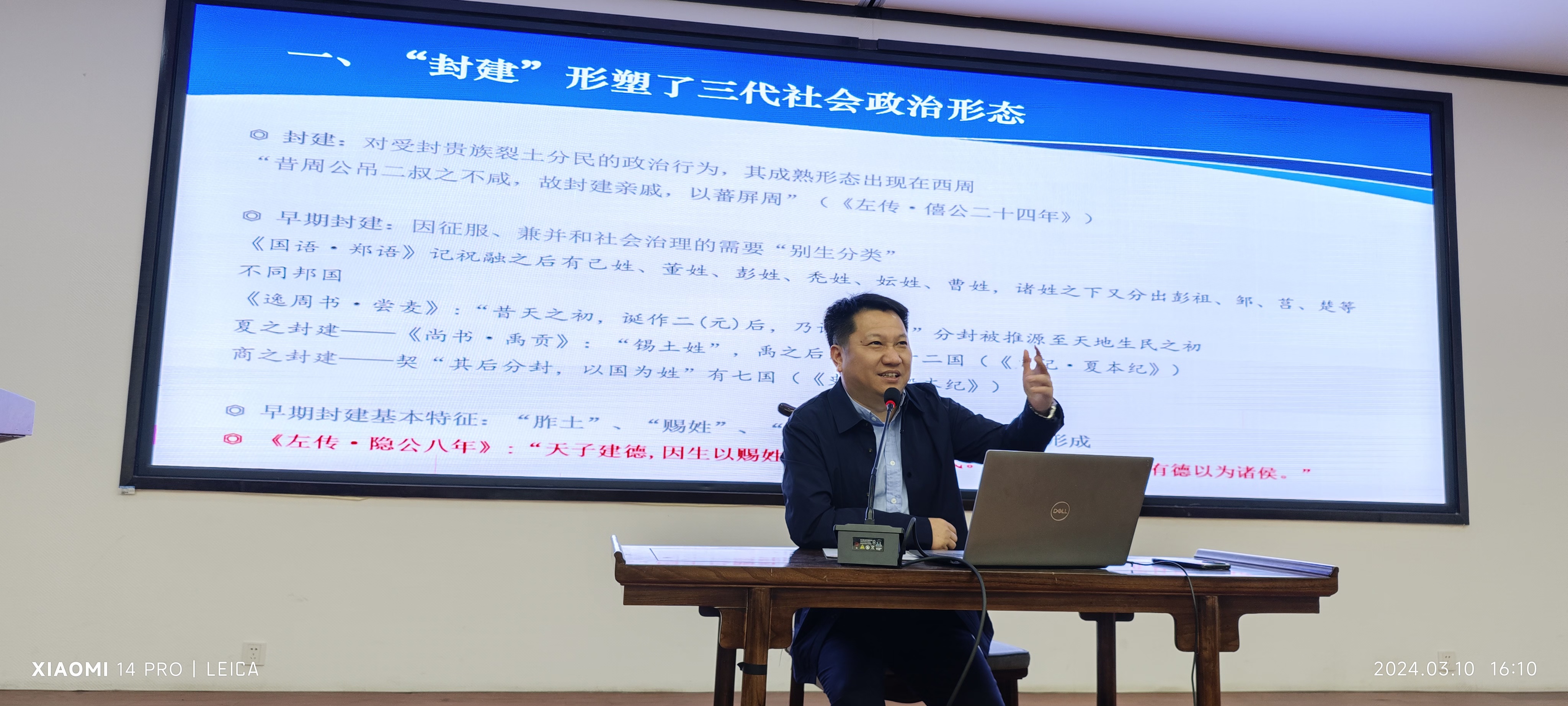 谢教授的讲座内容丰富、条理清晰。在他看来夏商周封建以早期和成熟分封为基本形式塑造了三代政治上的等级式君主和多元臣僚形态,同时以“授土授民”为内容造就了王权所有、贵族分层占有土地与人口的经济所有制,而以“德”为本位的分封理论则形塑了三代的文化形态。缘此,三代可谓是名副其实的封建社会。这种观点拓展了学生的学术视野,让学生深刻认识夏商周三代的封建社会形态,更有助于我们用本土话语体系构建新时代具有中国特色的古代社会形态理论。