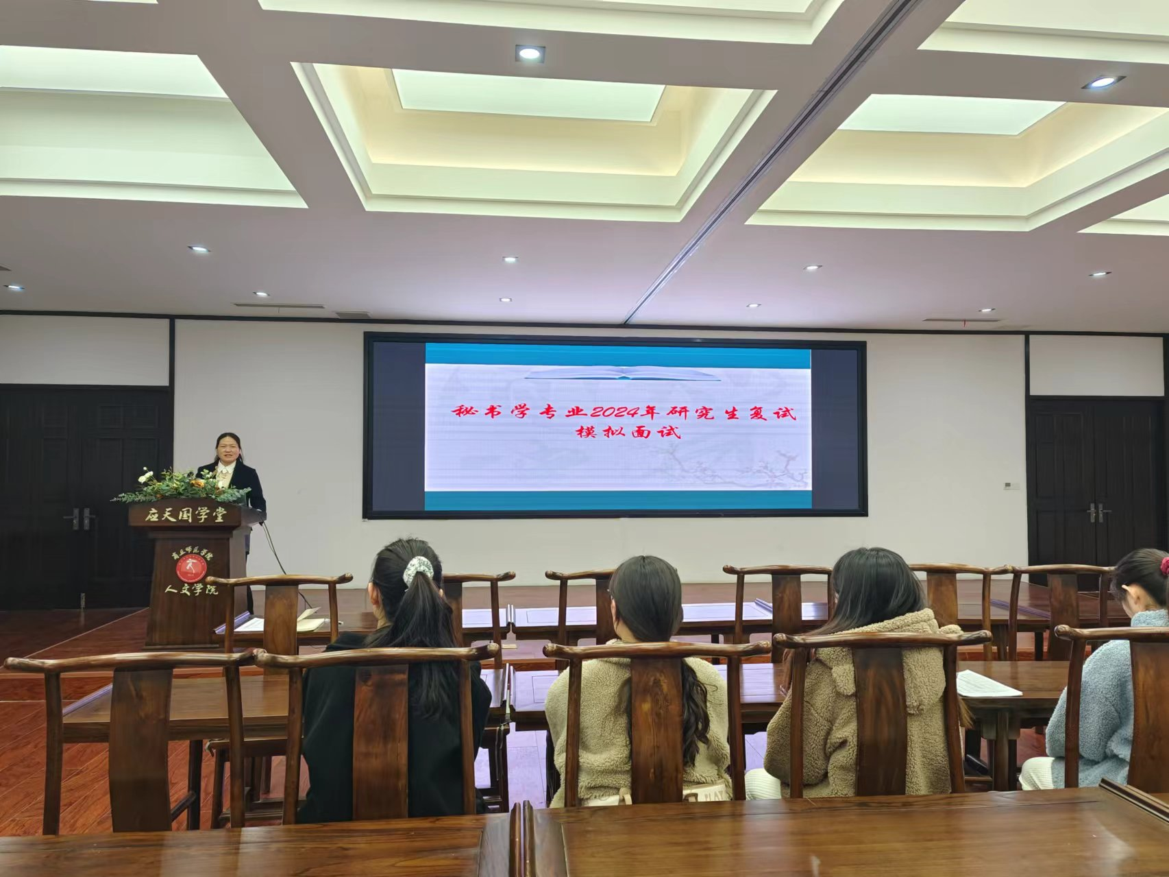 为帮助考生更好地了解研究生复试的形式和内容,提升他们的应试能力和信心,2024年3月18日上午,今年会官网秘书系在汉梁楼国学堂举办2024届考研复试模拟活动,王琰、张富林、李红出席活动,为考研复试学生提供指导。