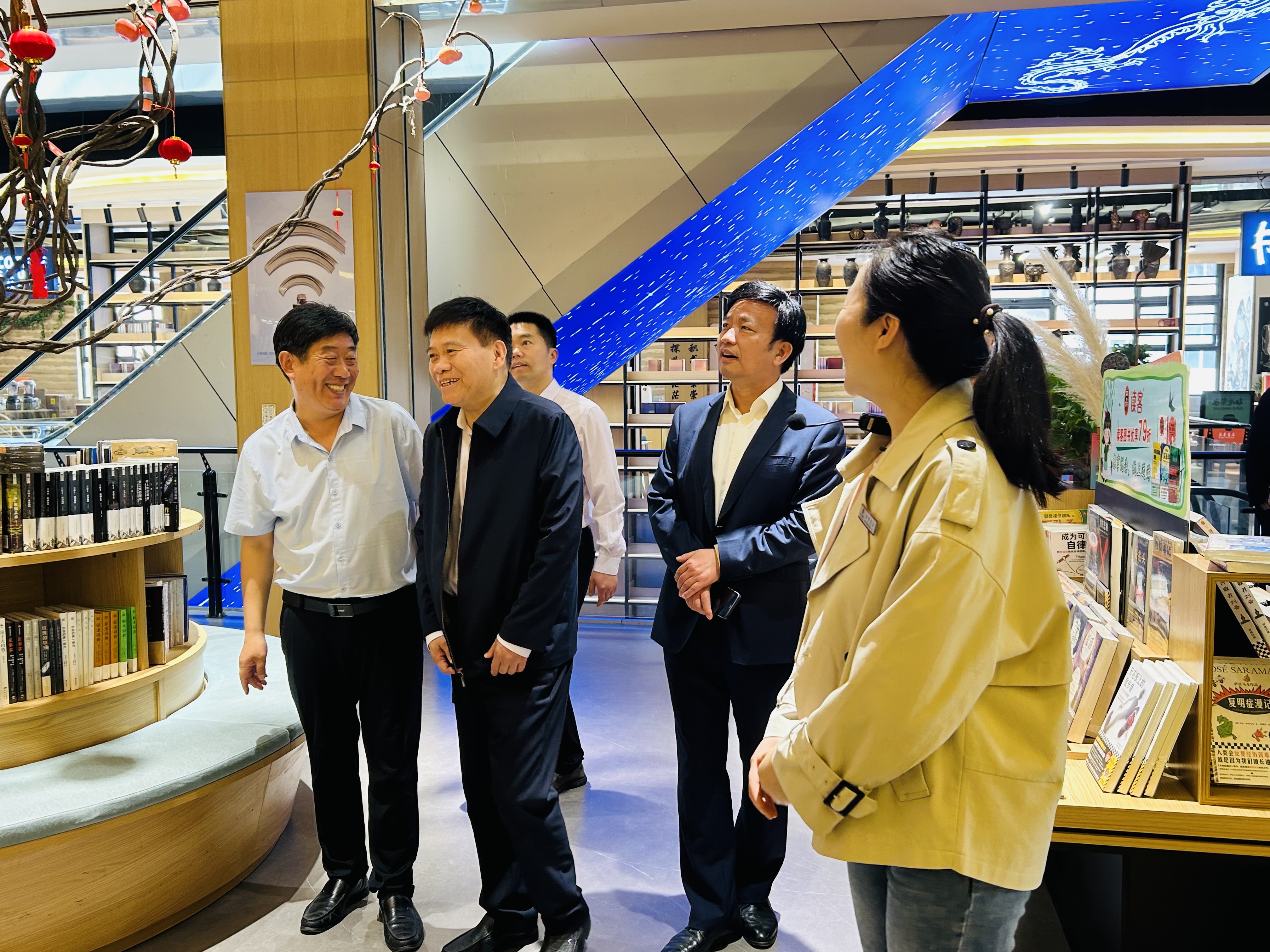 签署就业实习基地前,吴金山副书记一行在王永定总经理以及书店其他负责同志的陪同下,参观了书店各个功能区,了解了书院的运营情况及今后的发展规划,对书店优美的环境空间、浓郁的书香氛围和氤氲的人文气息给予了高度评价。