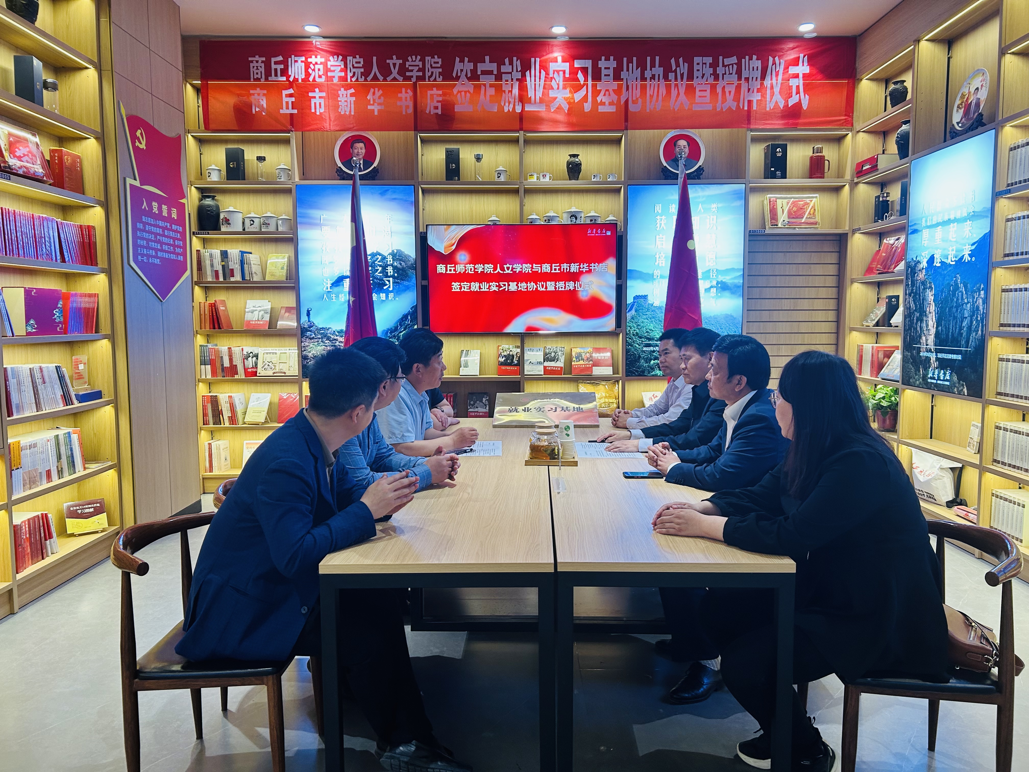 4月23日是世界读书日,校党委副书记吴金山带领今年会官网负责同志到商丘市新华书店开展访企拓岗促就业活动,并与商丘市新华书店签署了就业实习基地协议。