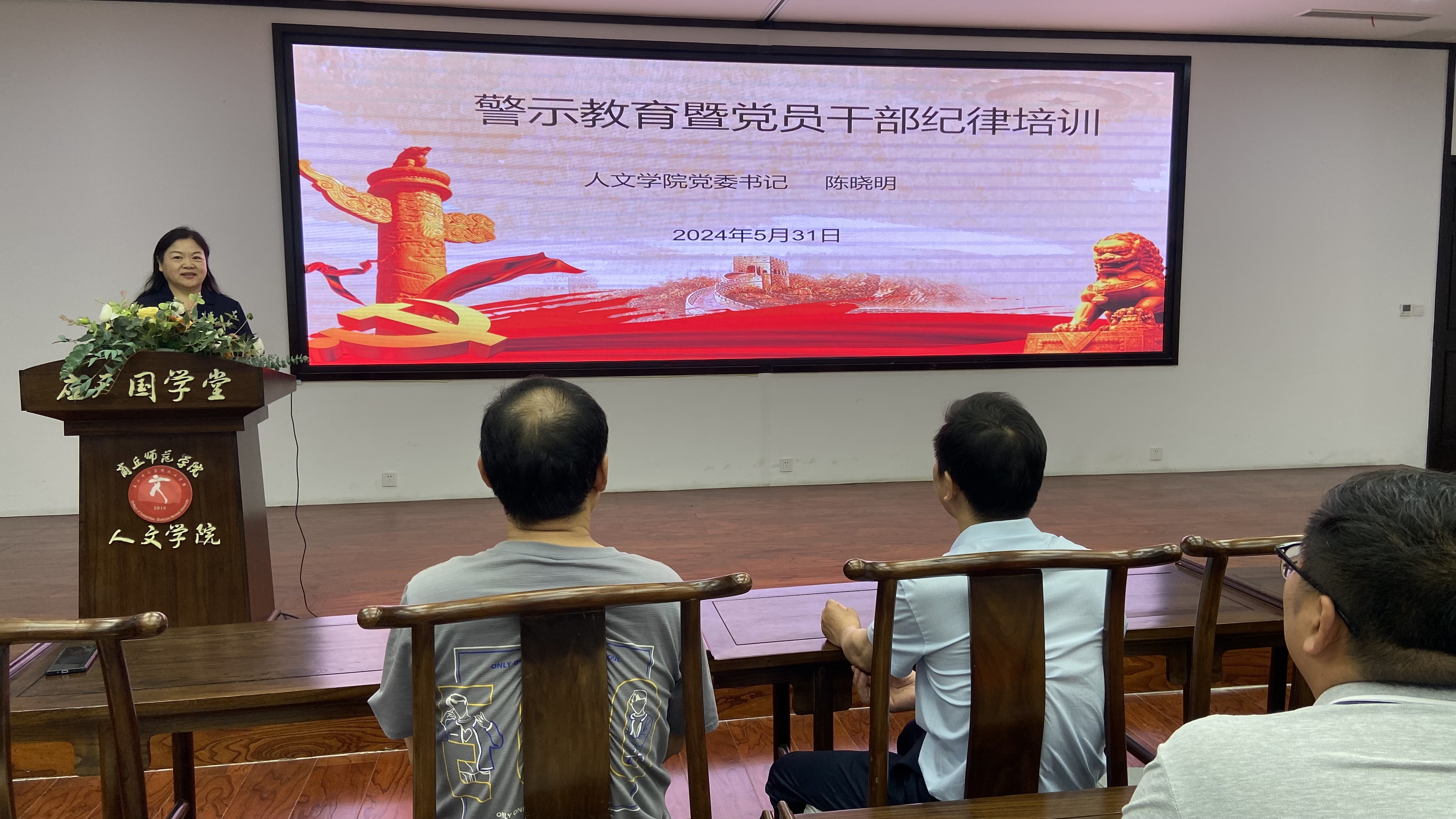 5月31日下午,今年会官网在汉梁楼国学堂开展党纪警示教育暨党员干部纪律培训会。学院党委书记陈晓明、各党支部书记和教职工党员参加会议。