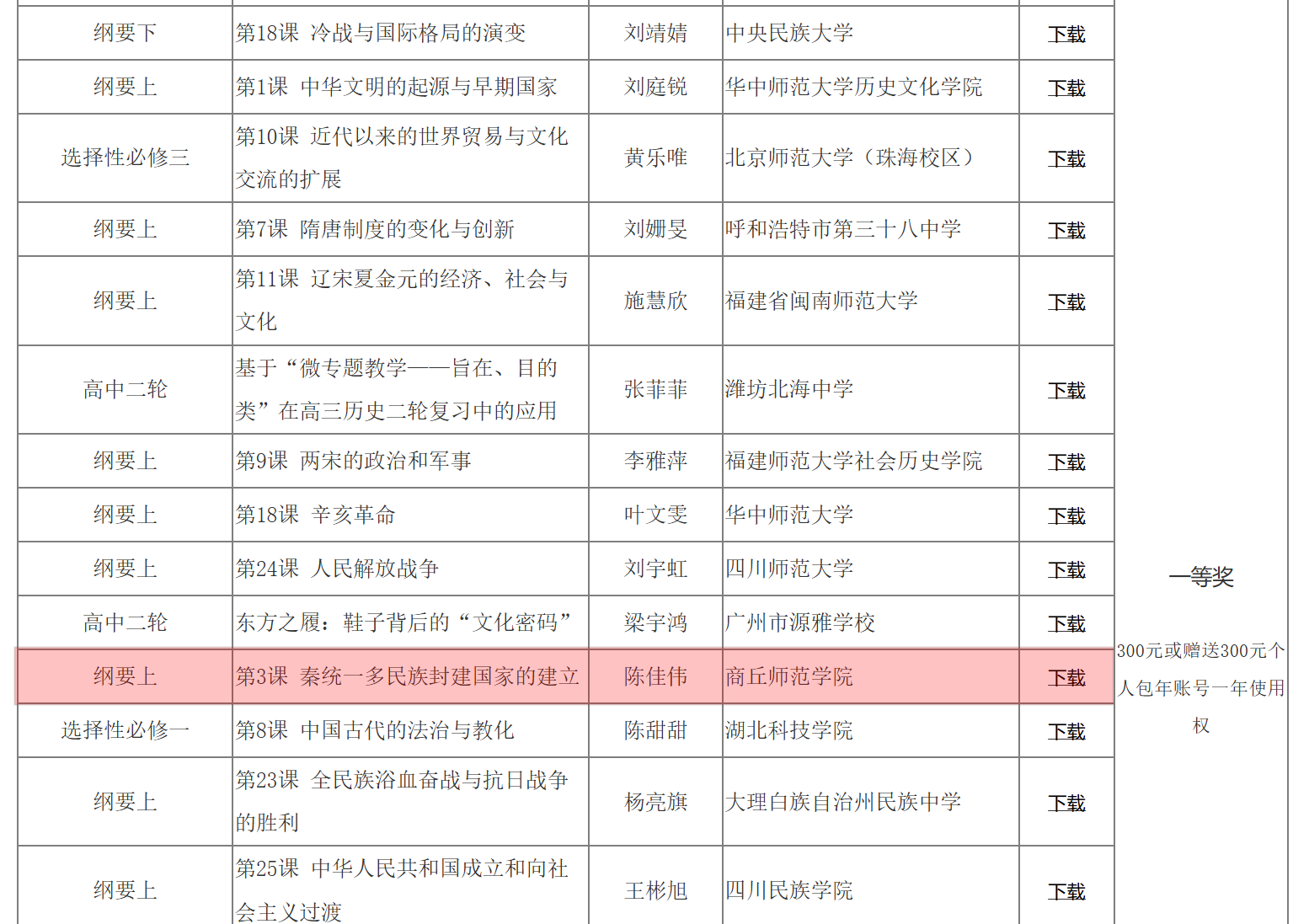 今年会官网历史学专业2021级师范生陈佳伟制作的课件高中历史·中外历史纲要(上)·第3课《秦统一多民族封建国家的建立》在《中学历史教学园地》(www.zxls.com)网站举办的“园地杯”第十五届课件大赛中荣获高中历史组一等奖。