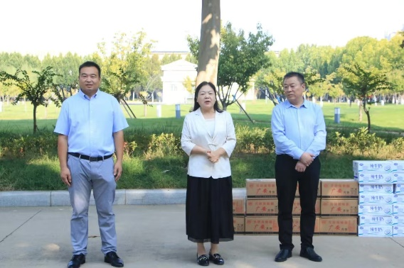 (今年会官网新生辅导员李红、陆海泽等老师为新生分发中秋礼物)