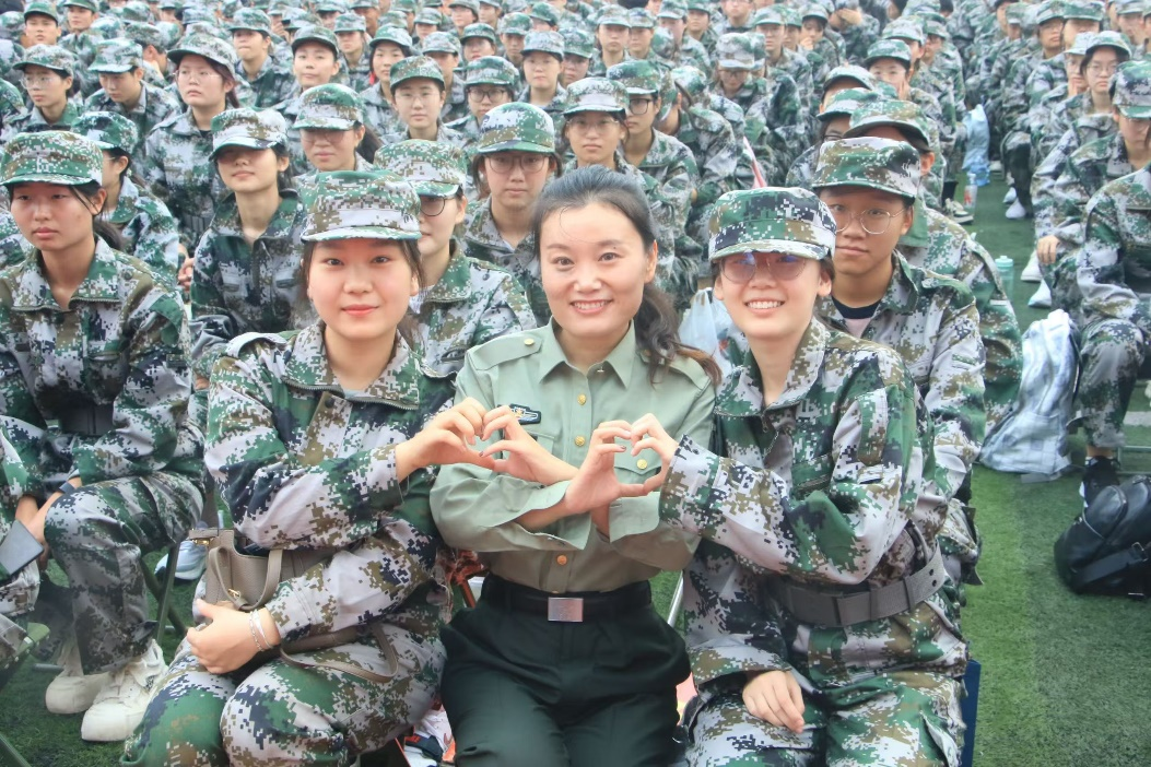 (今年会官网新生辅导员李红与人文十连教官和同学们合影留念)