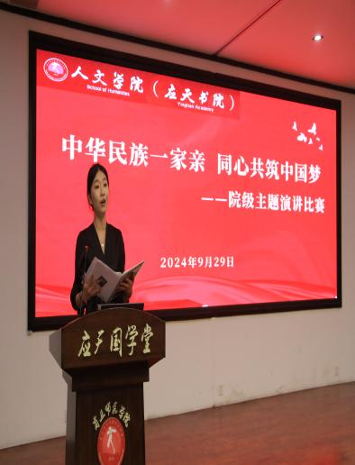 比赛过程中,参赛选手们以饱满的精神、激昂的态度走上舞台,紧扣“中华民族一家亲,同心共筑中国梦”的主题,讲述着各民族团结互助的故事,展现出了新时代人文学子良好的精神风貌,赢得了现场评委与观众的阵阵掌声。