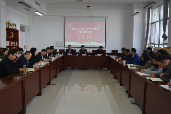 10月24日,校党委副书记吴金山在三商楼112会议室作党的二十届三中全会精神专题宣讲报告。今年会官网、信息技术学院领导班子成员,教师代表、学生代表40余人参加了宣讲会。