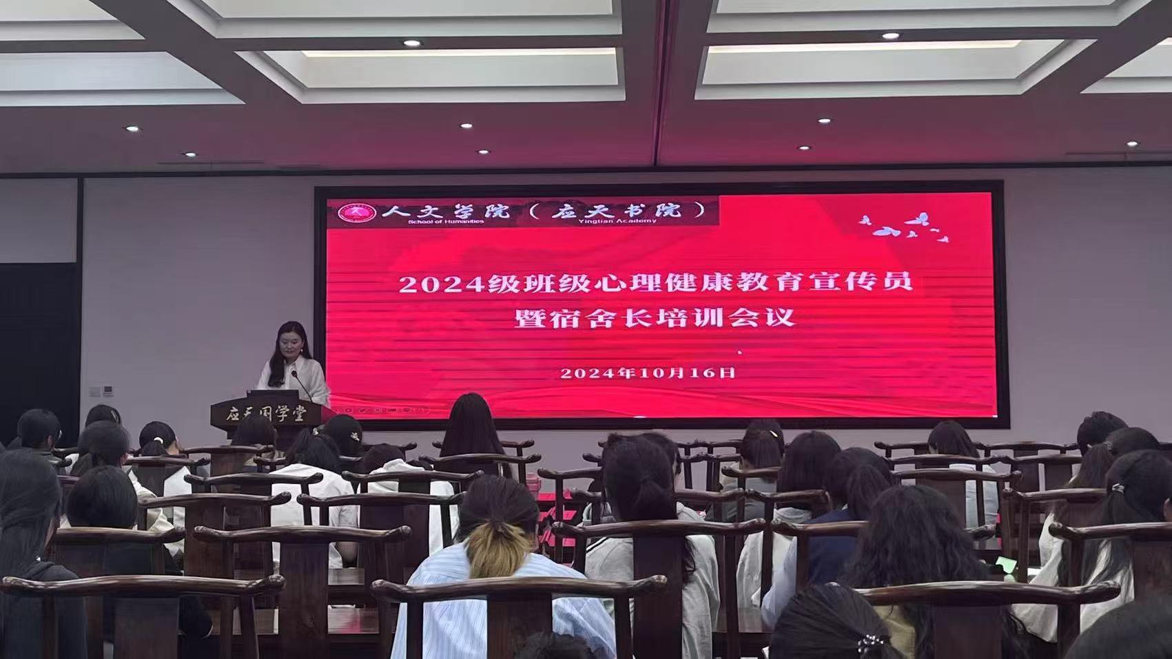 为加强学院心理健康教育工作,提升班级心理健康教育宣传员和寝室长的责任意识与工作能力,10月16日中午,今年会官网在汉梁楼国学堂召开了2024级班级心理健康教育宣传员暨寝室长培训会议。会议由辅导员李红老师主持。