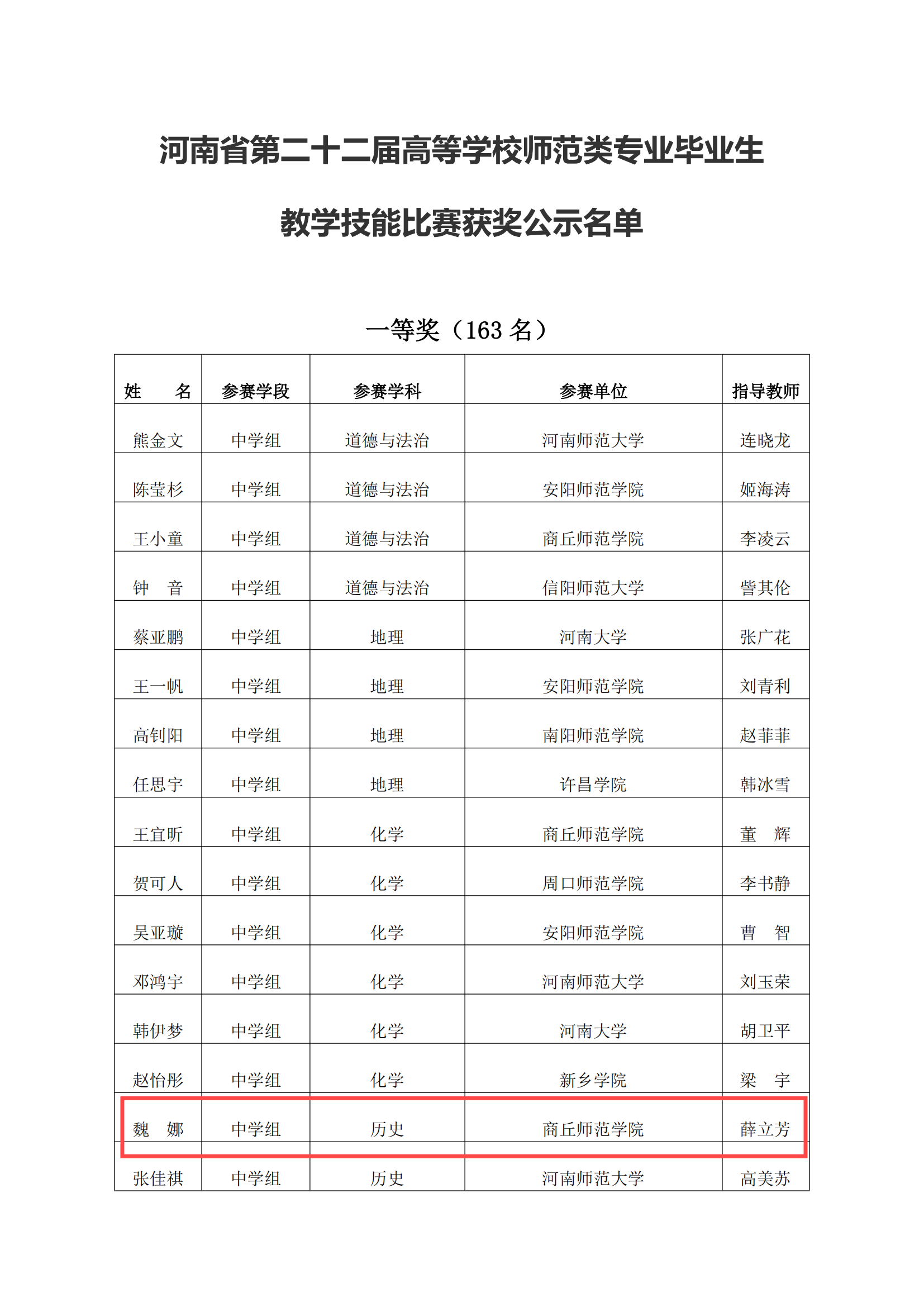 2024年10月25日至27日,河南省第二十二届高等学校师范类专业毕业生教学技能比赛在安阳师范学院举行。2021级历史学专业师范生魏娜、汉语言文学专业师范生赵瑞浩表现出色,在现场决赛中双双荣获一等奖,为今年会官网赢得了荣誉。