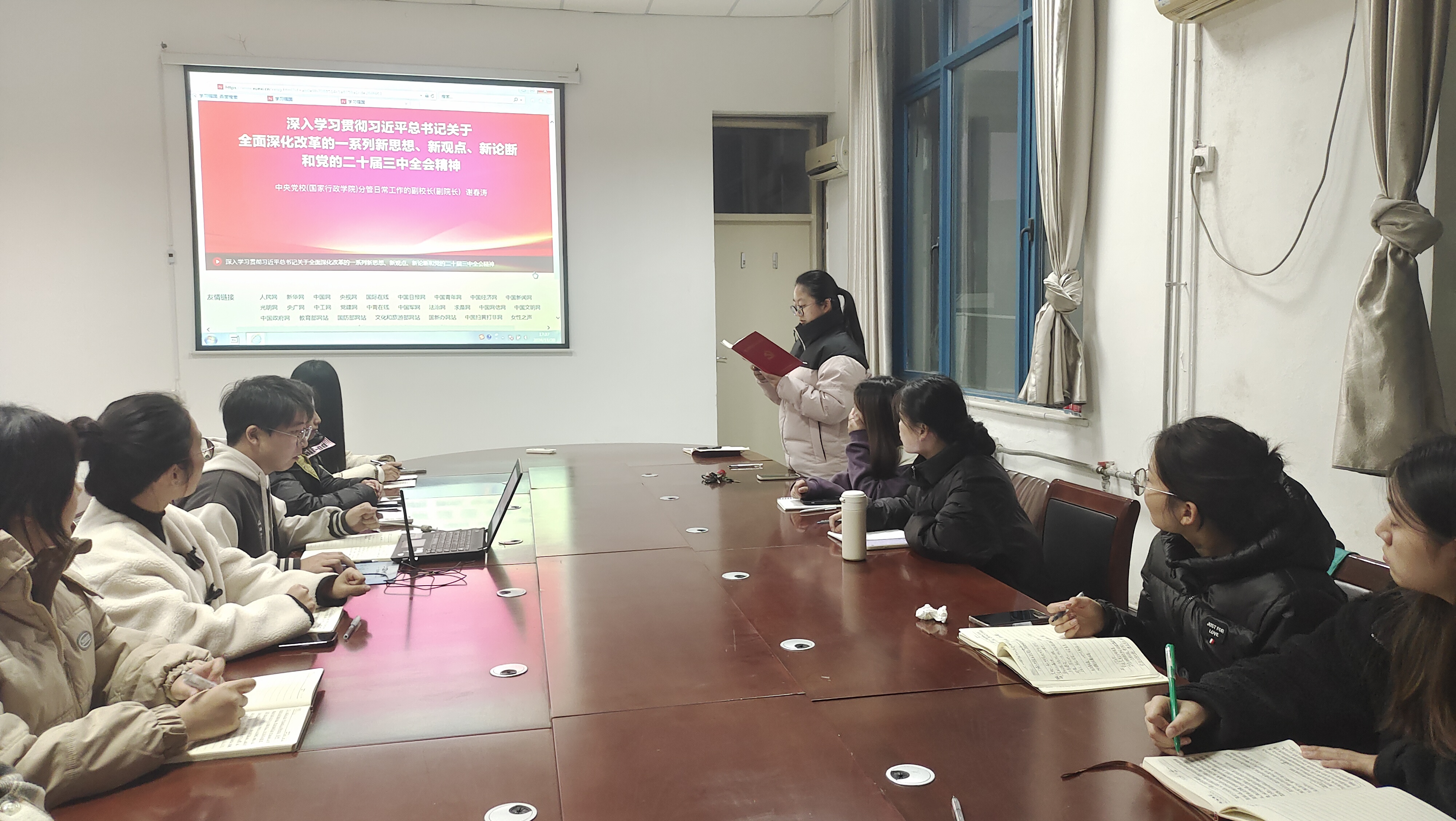 会上,全体党员首先集中观看了中央党校副校长谢春涛教授主讲的“深入学习贯彻习近平总书记关于全面深化改革的一系列新思想、新观点、新论断和党的二十届三中全会精神”视频。接着,支部党员结合自身学习和生活实际,就如何践行全会精神进行了发言,大家纷纷表示:作为青年党员,要坚定自己的理想信念和初心,审视自己的入党动机,积极作为,同时,要不断加强自身的社会责任感,提高为群众服务的能力,珍惜在校时间,提升自身技能。