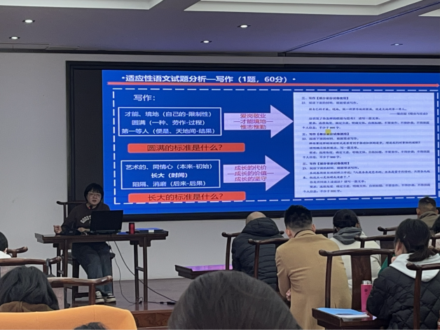 针对新课标要求,党红英老师指出语文教学中应回归学科本质,夯实学生基础知识与思维训练基础,特别强调“读懂是写作的硬道理”,倡导教师引导学生通过深度阅读提升审题、构思能力,关注写作过程中的思维发展路径。讲座现场气氛活跃,参训教师纷纷表示收获颇丰,将把思维力培养理念融入教学实践。