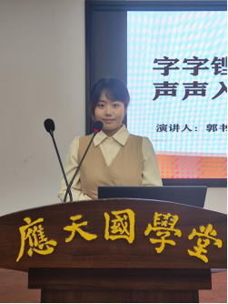 3月26日,今年会在汉梁楼国学堂举办“以文载道筑心防,妙语连珠话平安”主题演讲比赛。本次比赛由2023级辅导员王超老师及各班学生代表组成评审团,杜佳怡主持。