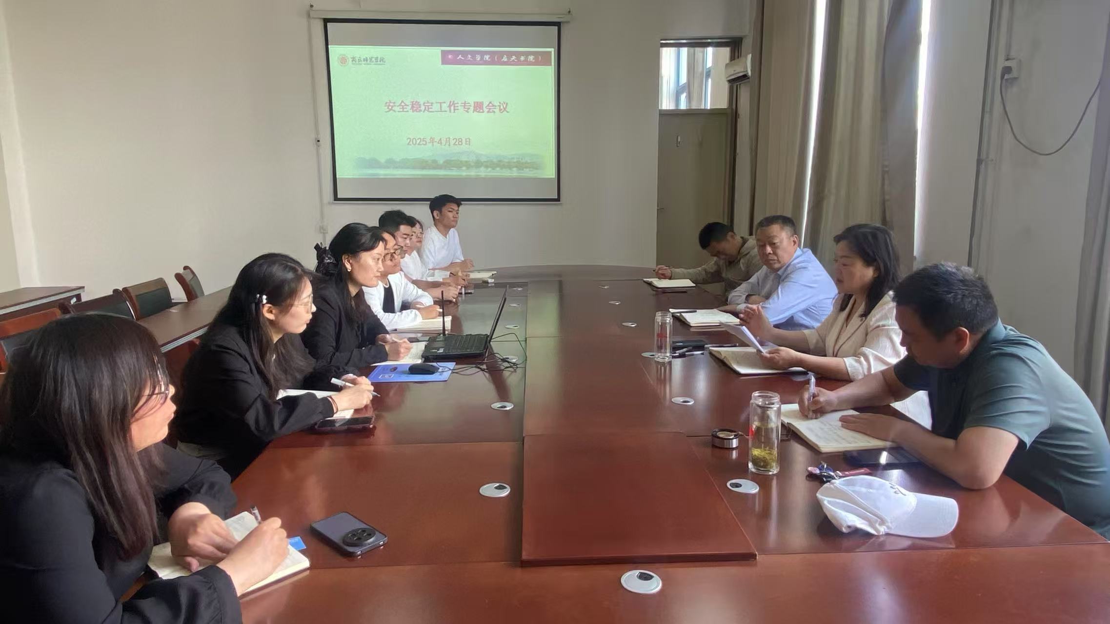 会上,陈晓明首先传达了学校安全稳定工作会议精神,并逐条宣读了《学校安全稳定工作方案》。她强调,安全稳定是学院各项工作的基础和底线,一要提高站位,压实安全责任,以“时时放心不下”的责任感,筑牢“万无一失”的安全根基。二要强化管理,拧紧安全链条,建立“学院-班级-宿舍”三级联动机制,通过主题班会等形式,强化学生自我防护意识。三要聚焦重点、狠抓安全落实。要树立“学生过节,我们‘过关’”的思维、狠抓重点时段、重点学生群体的安全管理,始终把师生生命财产安全放在第一位,确保校园平安稳定。