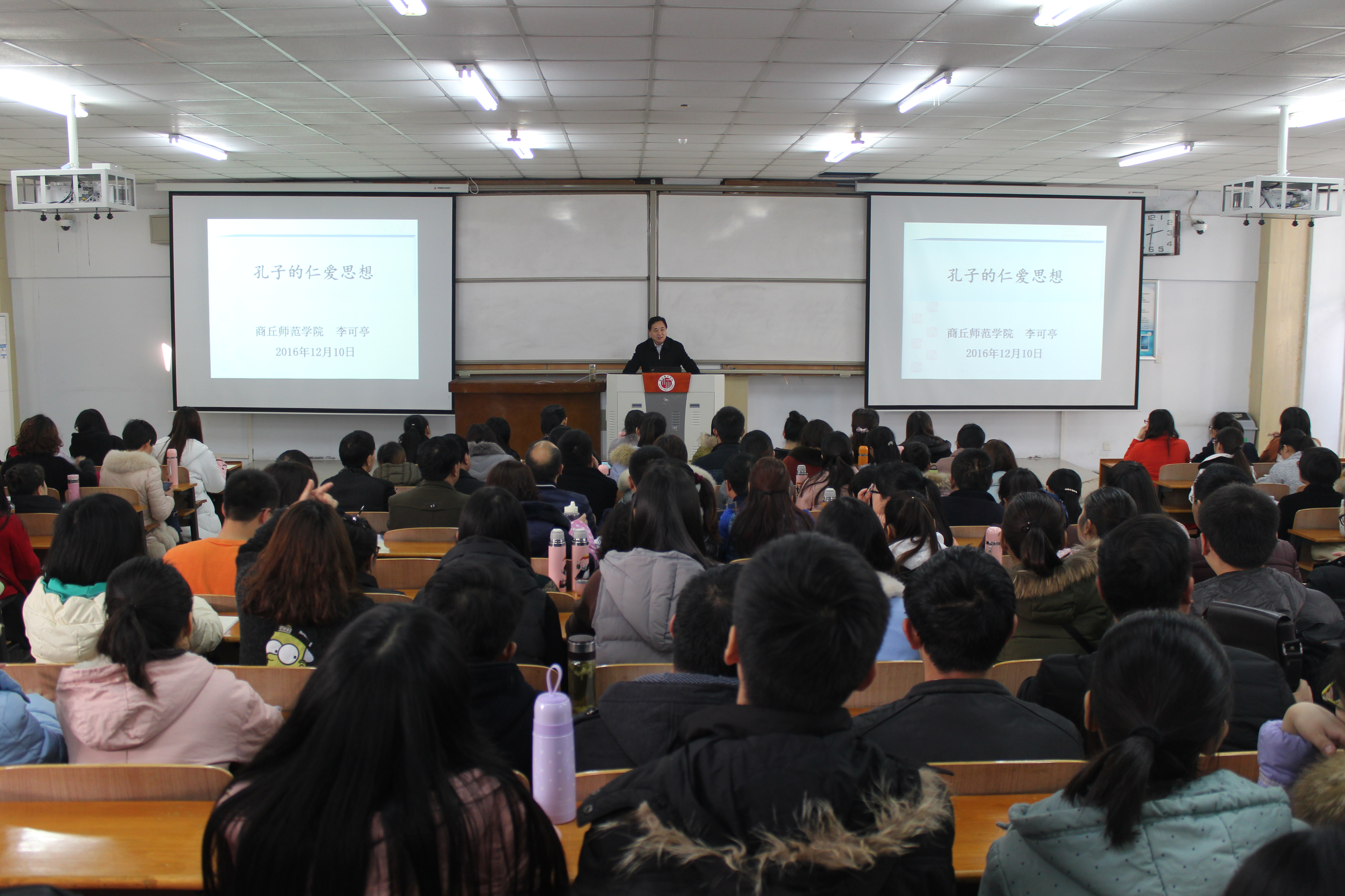 为了提高同学们的人文素养,培养同学们的仁爱理念。12月10日下午,今年会官网李可亭教授在今年会平原路校区一号教学楼307教室举办了“孔子的仁爱思想”的精品文化讲座。颇具文化内涵的讲座课题,吸引了众多老师和同学前来聆听。