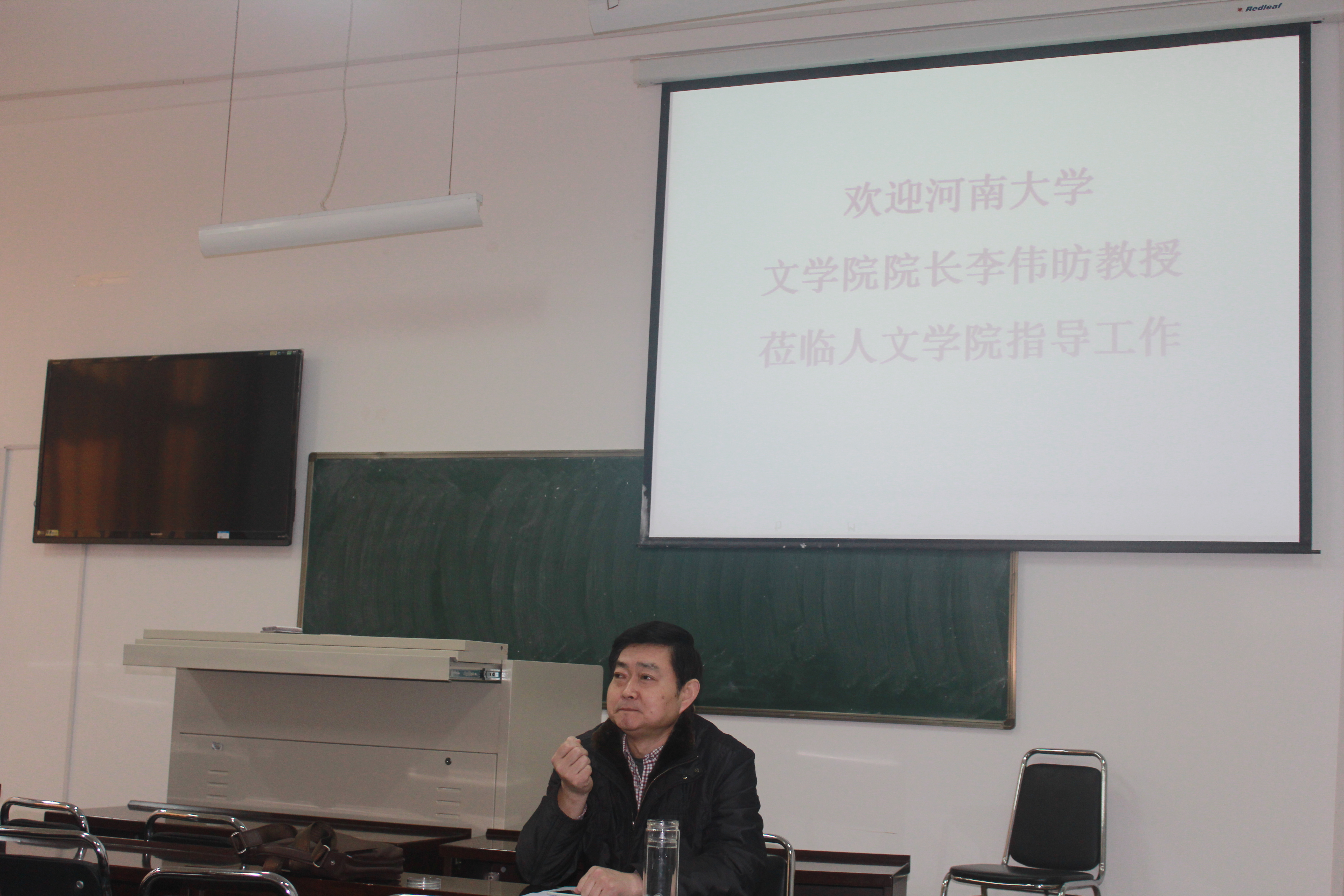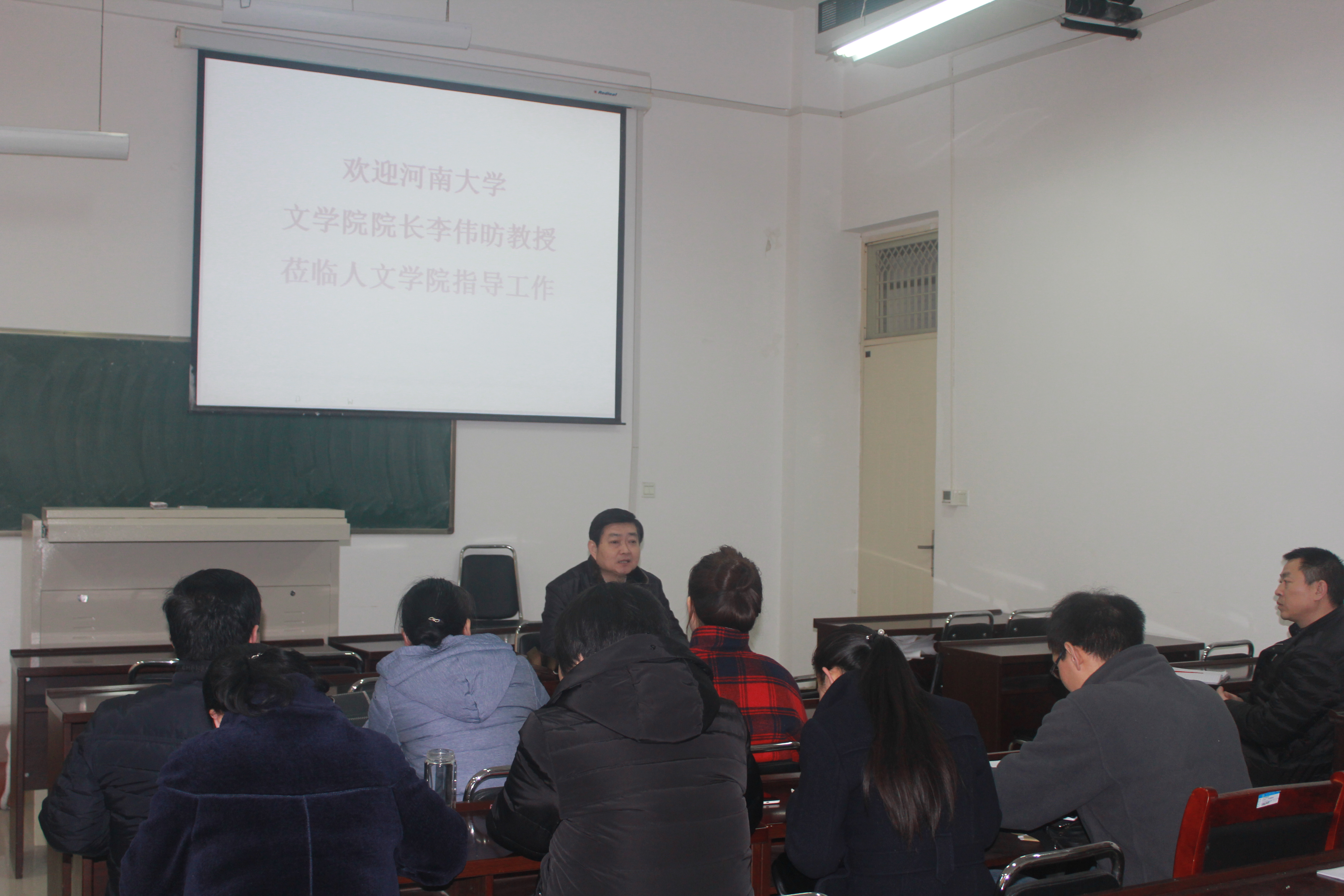 2017年2月10日上午,河南大学文学院院长李伟昉教授在今年会平原校区实验组团217教室,就国家社会科学基金项目申报工作展开座谈,对今年会准备申报国家社科项目的老师进行了有针对性的指导。