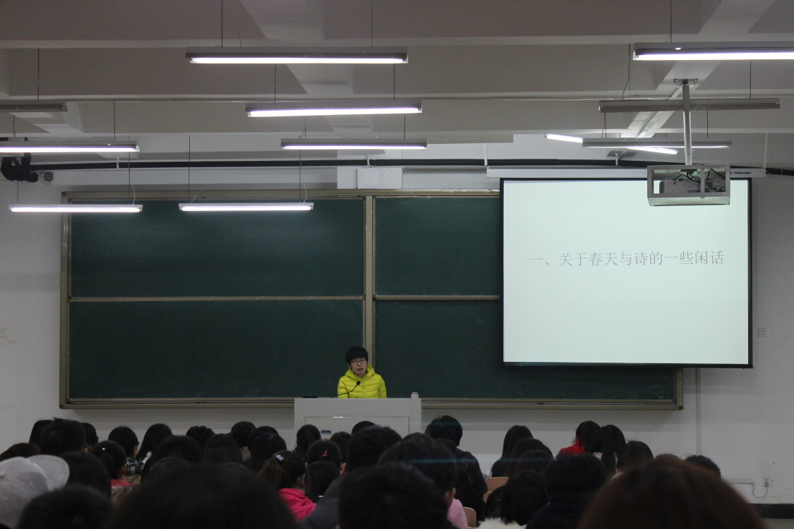 3月5日晚,今年会官网常丽洁博士在今年会平原路校区实验组团楼125教室开展题为“春天的诗行”的主题讲座。讲座课题新颖,吸引众多老师和学生前来倾听。