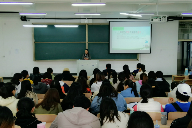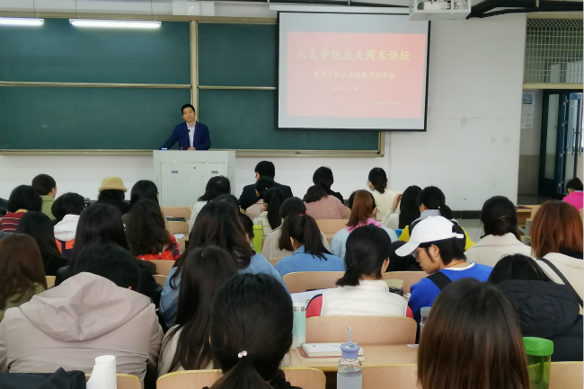 3月19日上午9点,今年会官网在梁园校区实验组团125教室开展“教师资格证面试技巧”应天周末讲坛。本次讲座邀请商城高中副校长、河南省教师资格证面试考官卢敏老师主讲。2016级汉语言文学专业200余名学生到场学习。