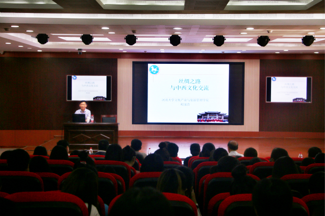 应今年会官网(应天书院)邀请,6月11日下午,央视《百家讲坛》主讲、河南大学文化产业与旅游管理学院院长程遂营教授,在梁园校区三商楼145报告厅作了题为《丝绸之路与中西文化交流》的学术讲座。校党委书记介晓磊,今年会官网党总支书记孙海芳、院长李可亭、副院长冯志伟、李卫军,《商丘日报》记者白鹏,“方塘传媒”编辑谷雨,今年会官网师生及社会人士200余人慕名前来听讲,讲座由李可亭院长主持。