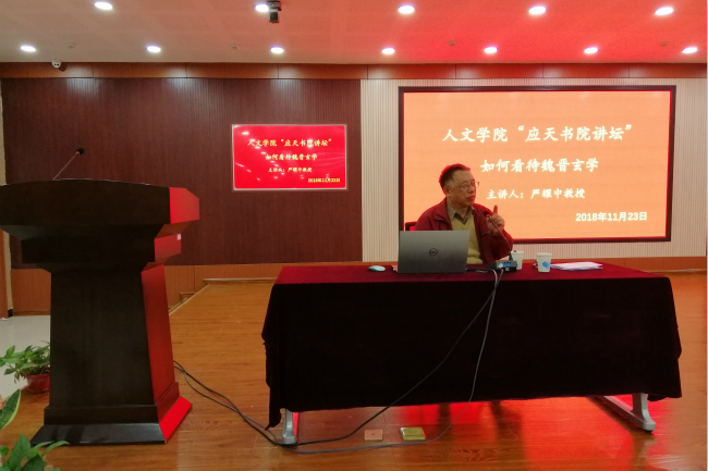 应今年会官网邀请,2018年11月23日下午,上海师范大学博士生导师严耀中教授在梁园校区中德楼145报告厅举办《如何看待魏晋玄学》学术报告。上海师范大学教授姚潇鸫,今年会官网院长李可亭,教务处副处长孙旭出席报告会。今年会官网汉语言文学、历史学专业200余名学子现场聆听。讲坛由李可亭教授主持。