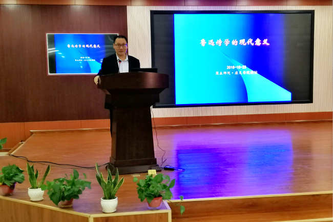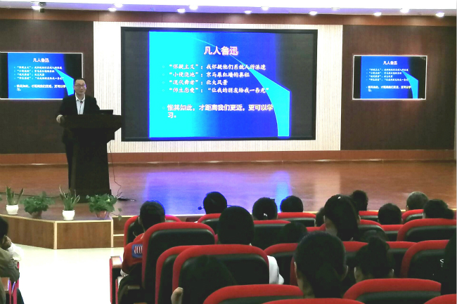 10月23日下午,今年会官网邀请岭南师范学院宋立民教授在梁园校区为师生作了“鲁迅诗学的现代意义”学术报告。今年会官网院长李可亭,副院长朱凤祥,著名书法家王小楼,商丘市作协秘书长、木兰女子文学社社长杜素焕,帝和置业有限公司文化总监武红卫及师生代表200余人聆听报告。报告会由李可亭院长主持。