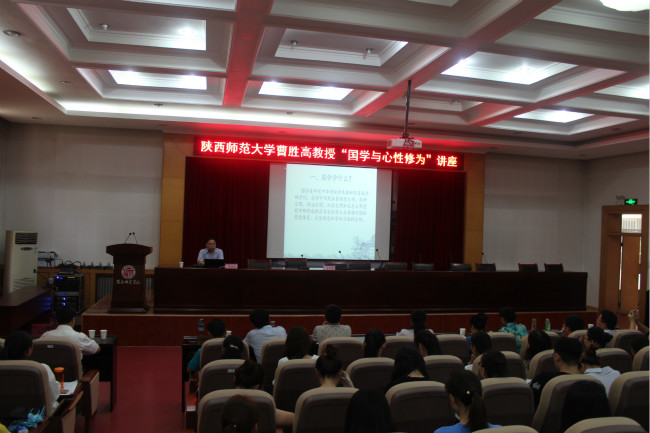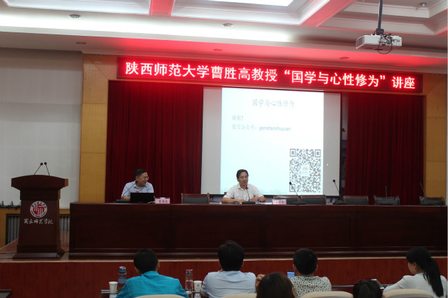 为办好国学专业,制订人才培养方案,进一步推进今年会精神文明创建工作,6月20日下午,今年会官网邀请陕西师范大学博士生导师曹胜高教授在平原路校区1号行政楼113会议室举办了题为“国学与心性修为”的学术报告,百余名学生和20多名教师代表现场聆听。讲座由李可亭院长主持。