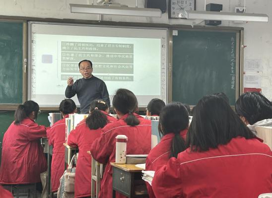 代玉东老师首先给坊员们介绍了高中历史教学的基本情况,提醒坊员们跟岗实践活动的内容和注意事项。随后,坊员们一起观摩了代玉东老师讲授的课程——《辛亥革命》。在授课过程中,代老师通过讲授法、提问法、自主探究法等方法,突出讲解本课重难点,使学生们掌握本节课内容,也使坊员们收获颇多。