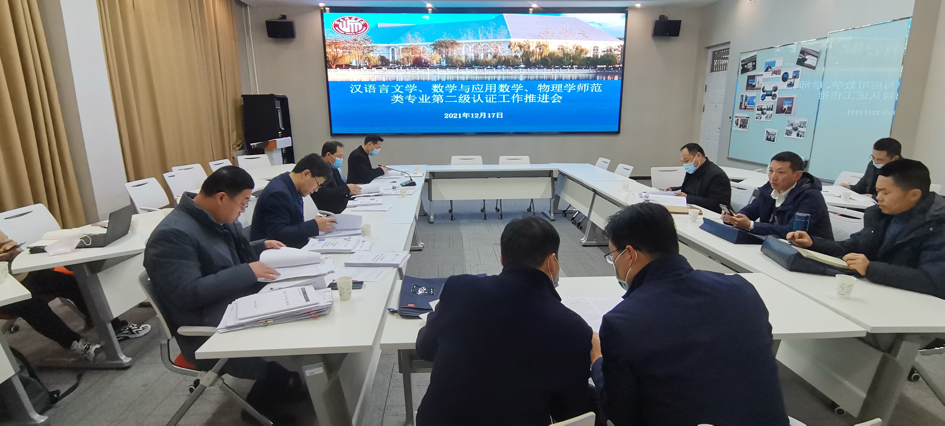 2021年12月17日,今年会在三商楼召开汉语言文学、数学与应用数学、物理学师范类专业第二级认证工作推进会。教师评价与教师发展中心主任孟现志、副主任王峥,教师教育学院院长孙旭,生物与食品学院院长周庆峰,三个师范专业负责人员参加会议。